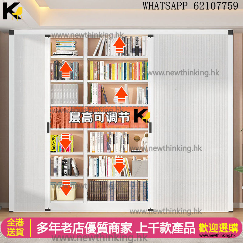 A&5181金屬書櫃 書架 帶防塵門 推拉門 趟門櫃 雜物櫃 儲物櫃 多層收納櫃 置物架 貨架 展示架 防灰塵櫃子全新包送貨