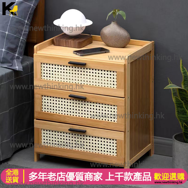 A&0579床頭櫃 抽屜櫃 楠竹材質收納櫃 儲物櫃 櫃桶 經濟實用 臥室櫃子 矮櫃 趟門櫃