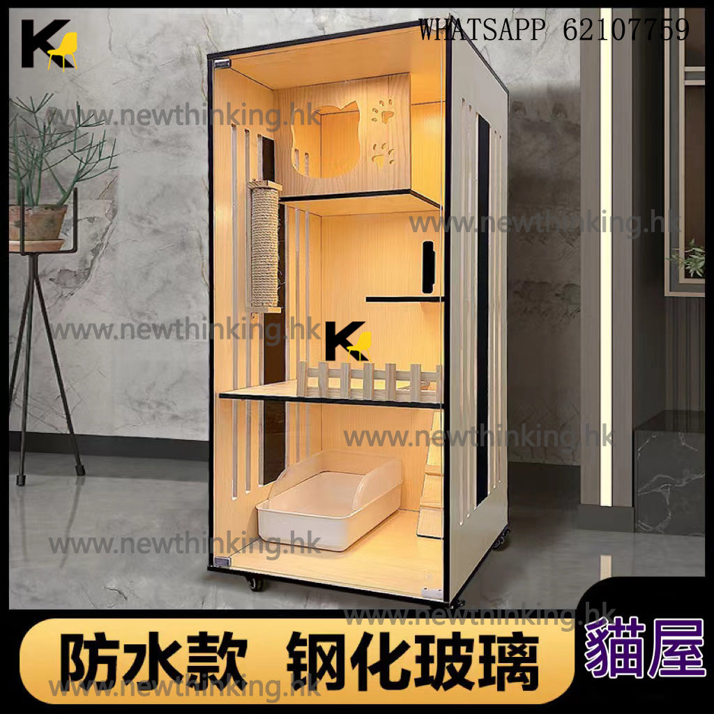 A&0750貓屋自由出入口貓爬架玻璃門貓籠貓別墅三層四層貓櫃豪華貓舍