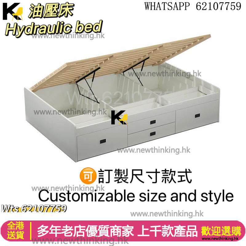 A&1865可訂造尺寸款式氣壓床 抽屜床 油壓床 儲物床 櫃桶床 高箱床 收納床 單人床 雙人床 四呎床 五呎床 三呎床排骨架床架