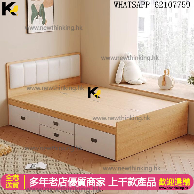 A&1869儲物床 無床頭收納床 床頭軟包靠背 櫃桶床 抽屜床 榻榻米床架 箱體床 高箱床 雙人床 四呎床 五尺床 板式床newthinking