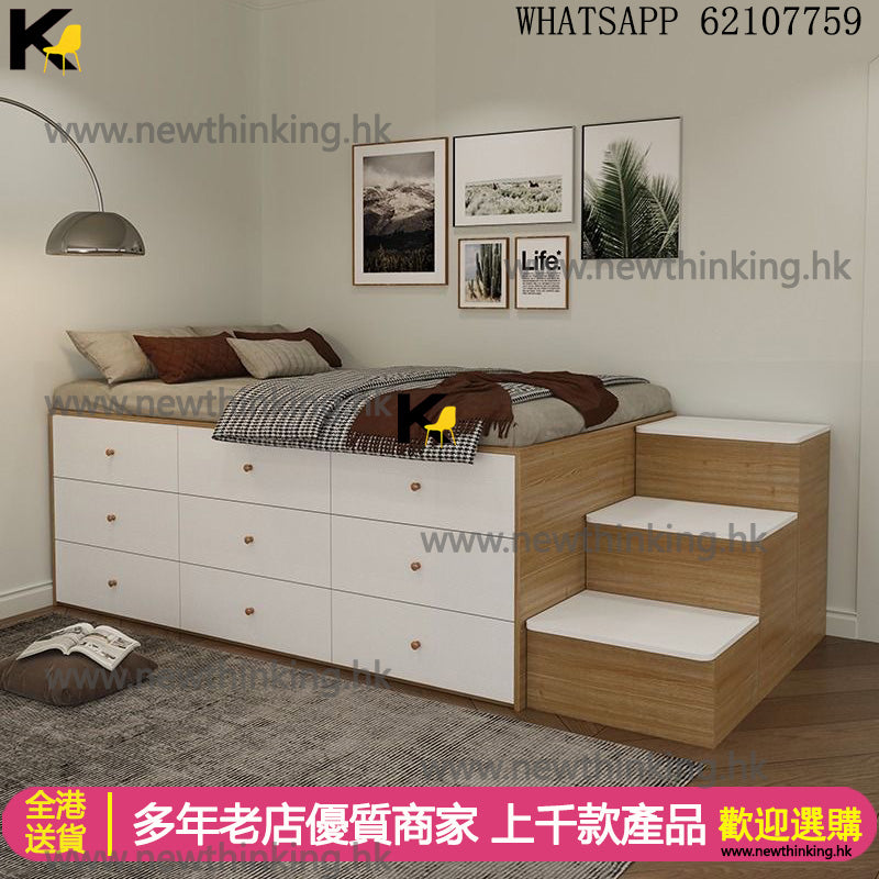 A&5120小戶型半高儲物床 可定制尺寸 多功能收納床 衣櫃床 抽屜床 高箱床