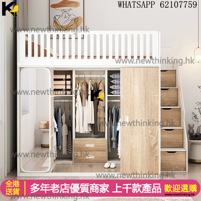 A&5119衣櫃床 小戶型半高儲物床 組合床 多功能收納床 衣櫃床 抽屜床 櫃桶床 高箱床 兒童床 成人床架 單人床 雙人床 梯櫃床 高低床 可定制尺寸 懸空床