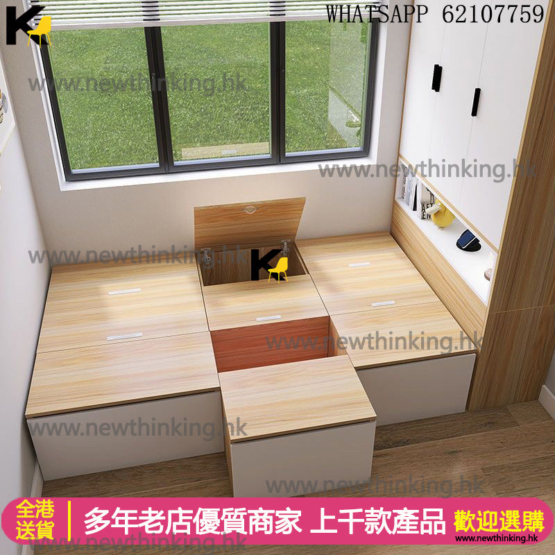 A&5121格仔床 高箱床 可定制尺寸 實木多層板生態板 日式榻榻米床架