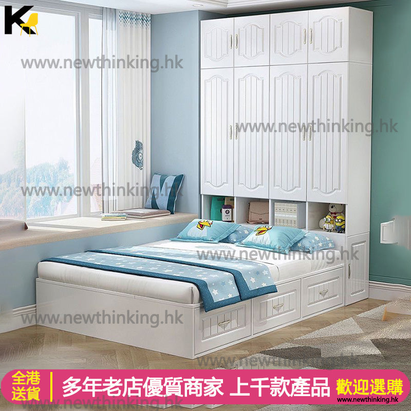A&0417衣櫃床組合床 榻榻米床架 組合櫃 臥室收納櫃 儲物櫃 單人床 雙人床 儲物床 高箱床 可訂製尺寸 白色床架 白色衣櫃