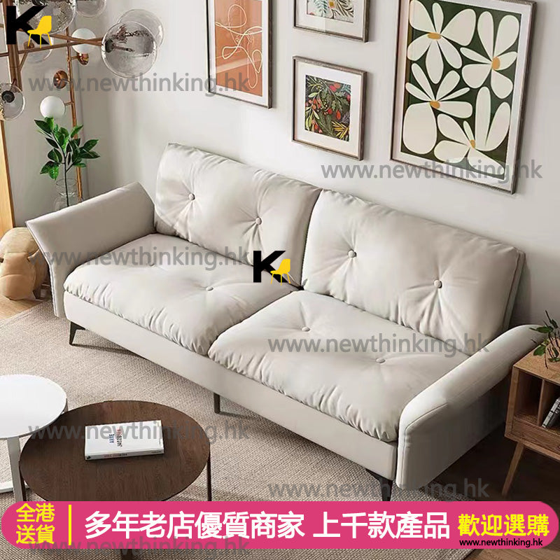 A&0703梳化床科技皮免洗沙發床 棉麻布藝梳化床 可躺雲朵布藝客廳奶油風格小戶型專用沙發