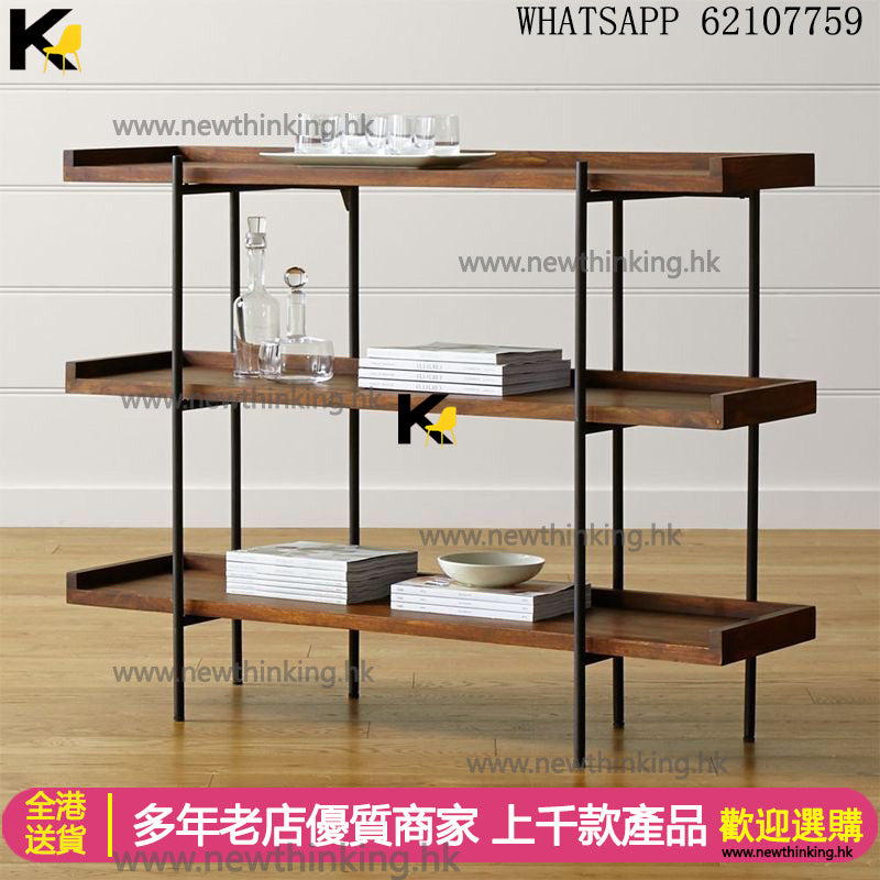 A&3982美式實木書架 置物架 多層收納架 落地架 鐵藝書櫃newthinking