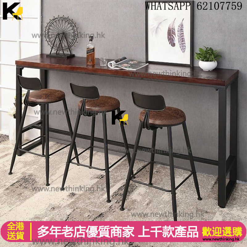 A&5229實木鐵藝吧枱吧椅 長條桌 奶茶店咖啡台 酒吧台椅組合