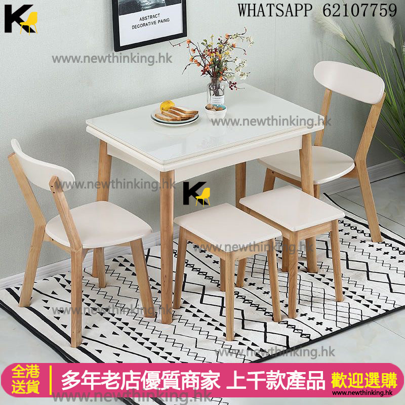 材質:桌腿桌框實木橡膠木,桌面實木生態板尺寸:單枱80*60*75cm:$690(展開120-80cm)單枱90*60*75cm:$750(展開120-90cm)岩板枱面80*60*75cm:$888(展開120-80cm)岩板枱面90*60*75cm:$950(展開120-90cm) 加購2張凳子+480hkd加購2張靠背椅+588hkd加購4張凳子+688hkd加購4張靠背椅+888hkd加購2張靠背椅2張凳子+830hkd 🔸Carousell老店高級人氣商戶,榮獲carousell平台2021-2025年“最佳銷量” “優質商戶” “傑出商戶”等多項大獎,歡迎大家Follow,可網站www.newthinking.hk落單 or whatsapp62107759咨詢 購物須知:(請閱讀後下單,確保購買無憂) 🔸一次購買多件產品可聯絡客服索要折扣碼 🔸本店產品全新正品,無二手貨品,請放心選購 🔸價錢包送貨,有電梯包送貨上樓,搬樓梯/長斜坡/村屋等請提前咨詢告知,需另加搬運費 🔸送貨時間:落單後4-8日左右送貨,訂製產品除外,不接急單,如物流有延誤我們會持續跟進直至貨物簽收,大件產品無法承諾時效,請知悉 🔸傢俬產品不包含安裝,大部分產品需要自己安裝,配送安裝圖or安裝視頻,部分複雜款式不配備安裝圖需專業安裝人員上門安裝,如有需要可加安裝費我哋安排師傅上門安裝或自行安排師傅上門安裝 🔸傢私產品誤差約±1-2cm。軟體產品誤差±3-5cm為正常範圍,請預留好相應的尺寸偏差以及踢腳線的尺寸避免無法安裝 🔸收到貨有任何售後問題請聯絡我哋whatsapp62107759,輕微破漆免費補寄油漆,破損斷裂等情況免費補寄新配件...