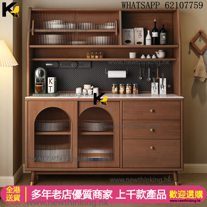 A&1590餐邊櫃 碗櫃 茶水櫃 廚房收納櫃 岩板雲石檯面 儲物櫃 長虹玻璃櫃