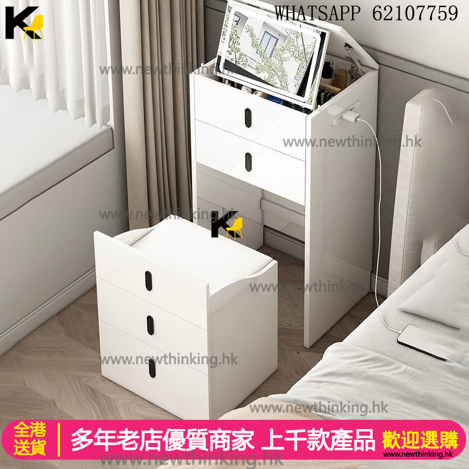 A&1503免安裝化妝枱凳子組合 梳妝枱帶三色燈光鏡子 梳妝桌子椅子收納櫃一體抽屜櫃 化妝品儲物櫃 櫃桶 書桌全新包送貨整裝發貨