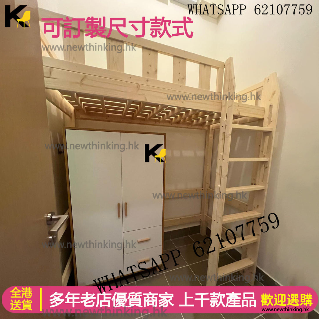 A&1548可訂造尺寸高架床 半高床 組合床 衣櫃床 梯櫃床 多功能上下床 碌架床 loft bed  工人床 實木床 松木材質 加厚爬梯 單人床 雙人床