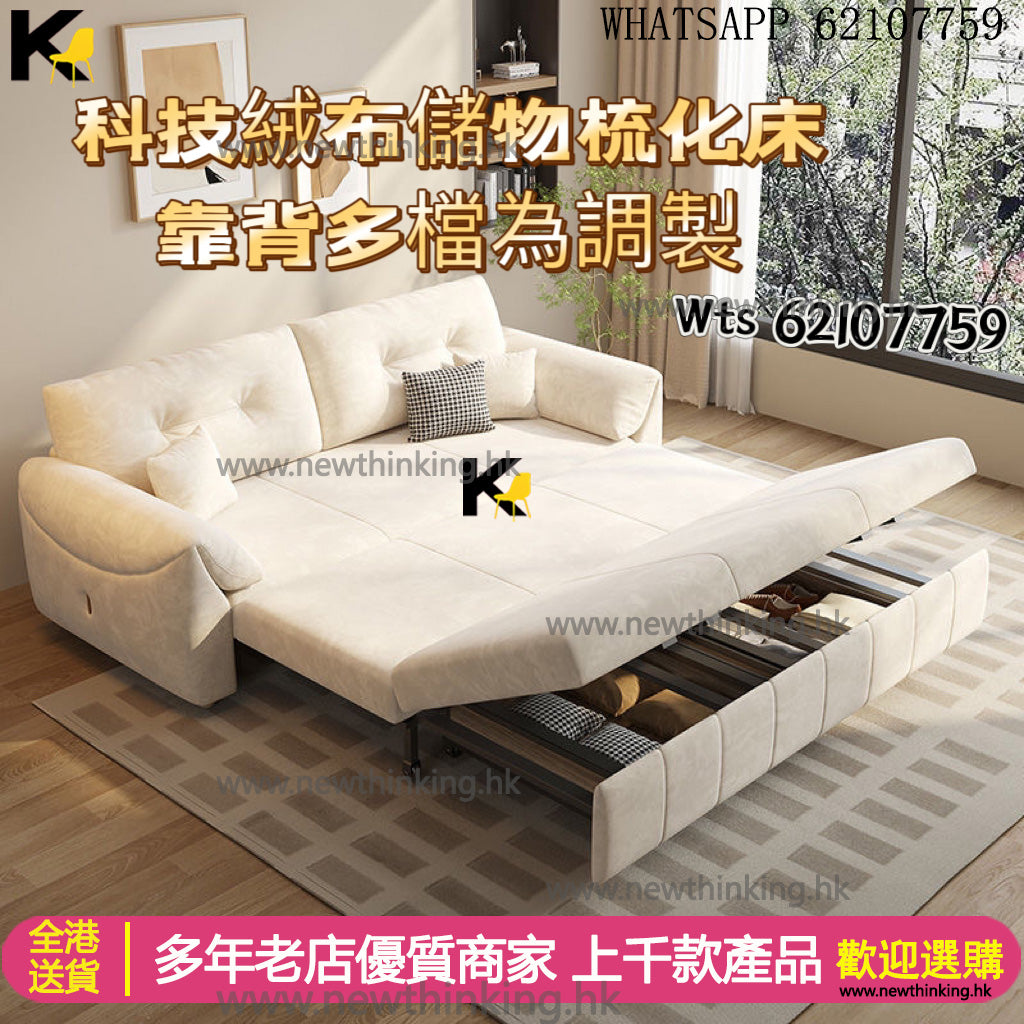 A&1693 Technology Fleece Sofa Bed, Folding Sofa Bed, Sliding Bed, Multiple Color Options, Storage Sofa, Single, Double, and Triple Size Sofa