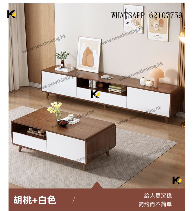 A&1652 Solid Wood TV Cabinet and Coffee Table Combination - Living Room Storage Cabinet, Drawer Cabinet, Bucket Cabinet