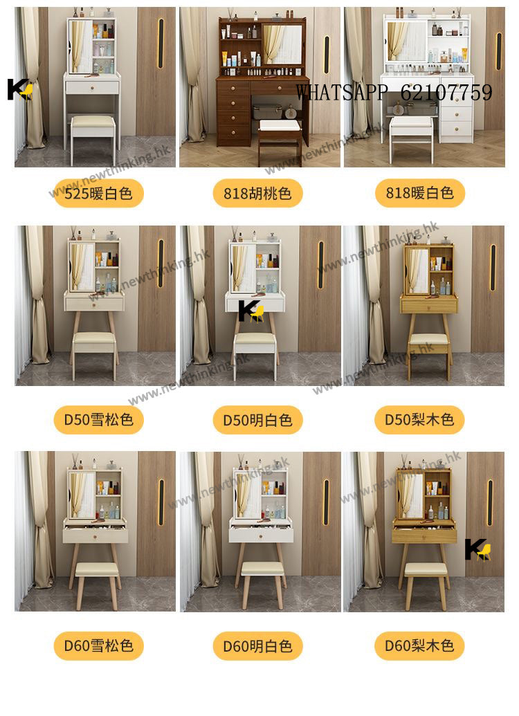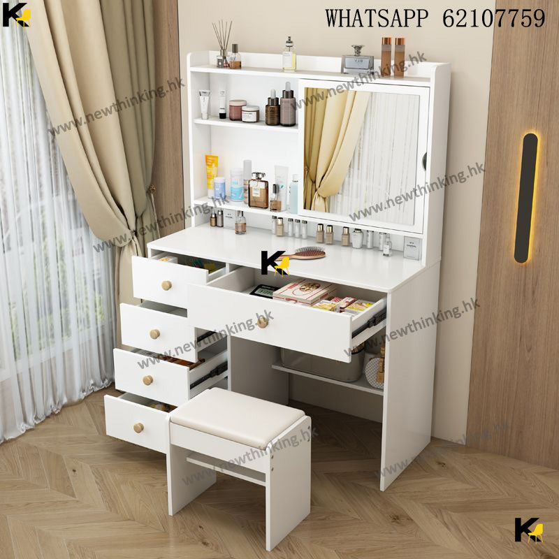 A&1723 Dressing Table, Makeup Table, Cosmetic Storage Cabinet, Bedside Table, Bedside Stand with Mirror, Simple Dressing Table and Chair