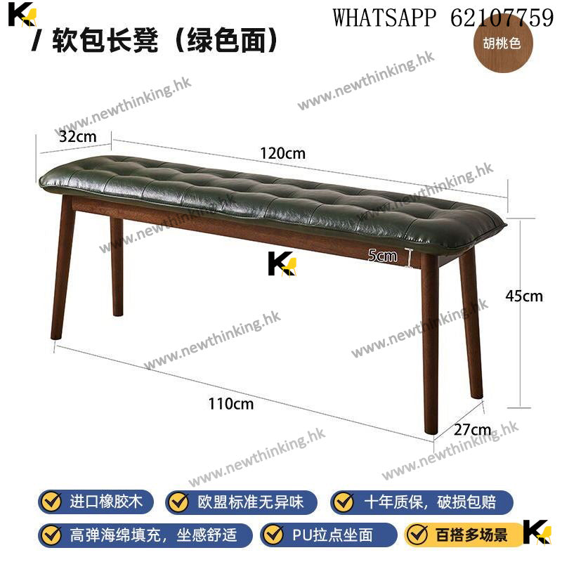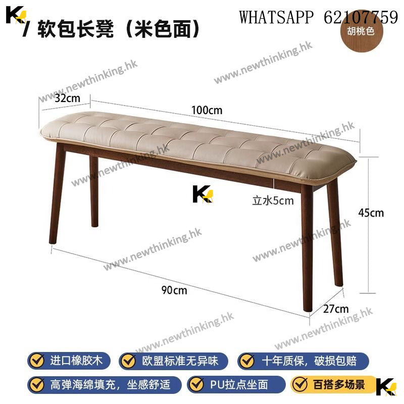 A&1730 Long Solid Wood Bench, Upholstered, Dining Chair, Long Bench, Bed End Bench, Shoe Changing Bench, Dining Chair