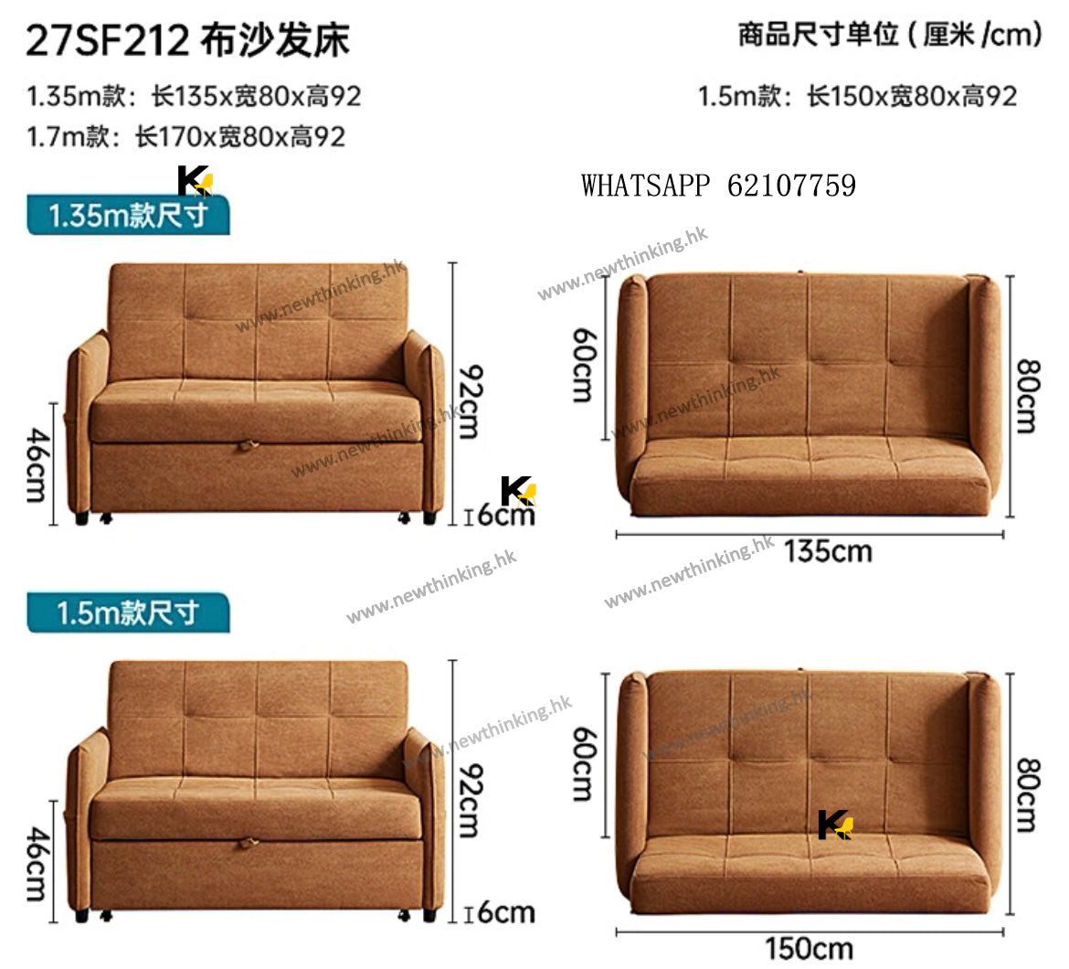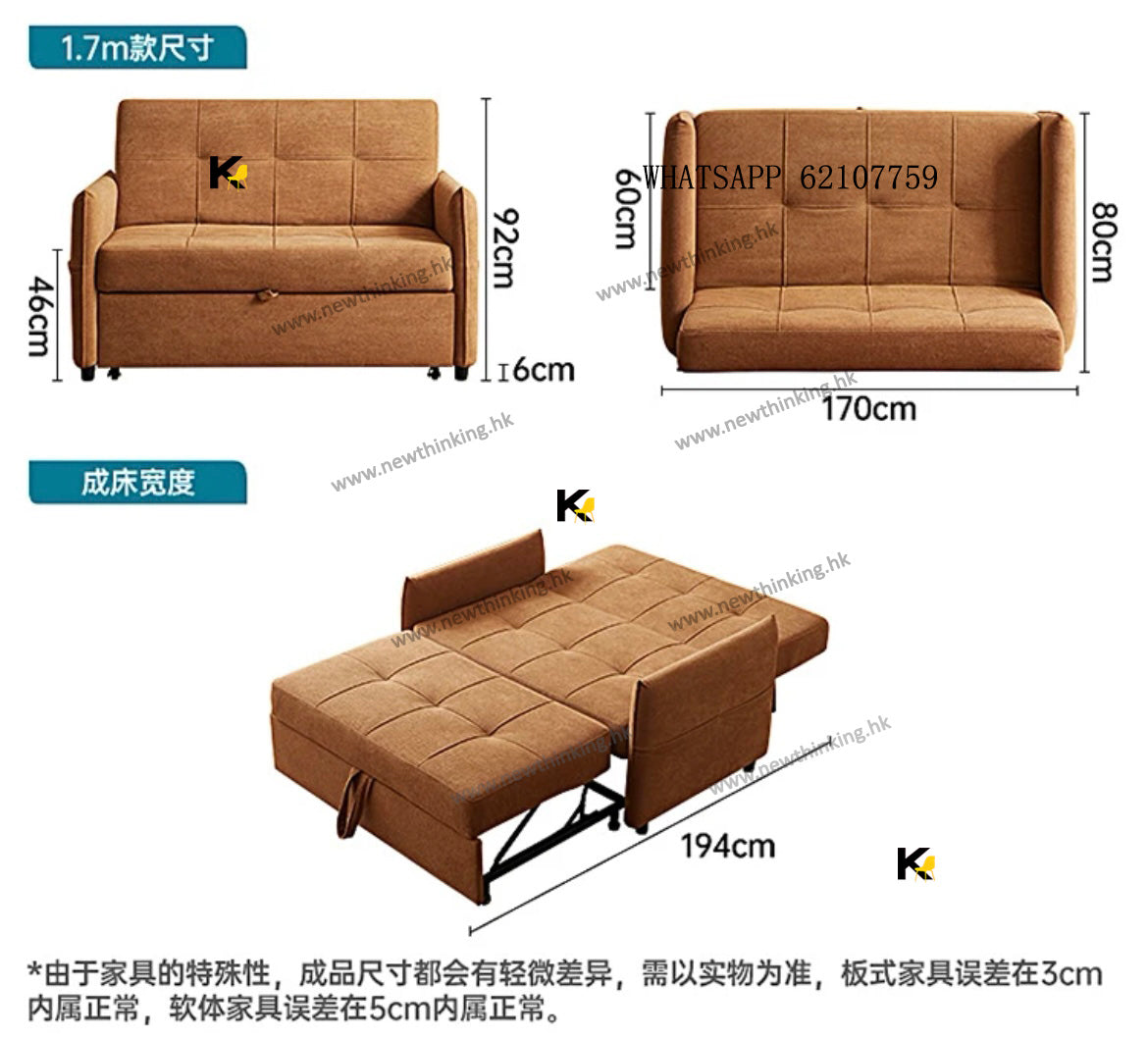A&1731 Fabric Sofa Bed, Single/Double Sofa Bed, Multiple Color Options, Multifunctional Folding Sofa Bed, Sliding Sofa Bed, Designed for Small Apartments