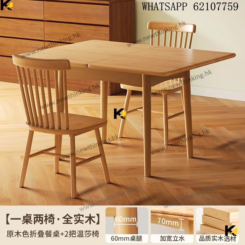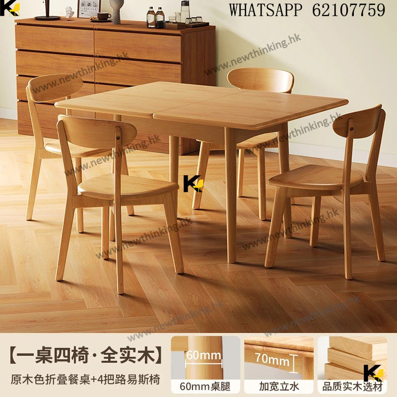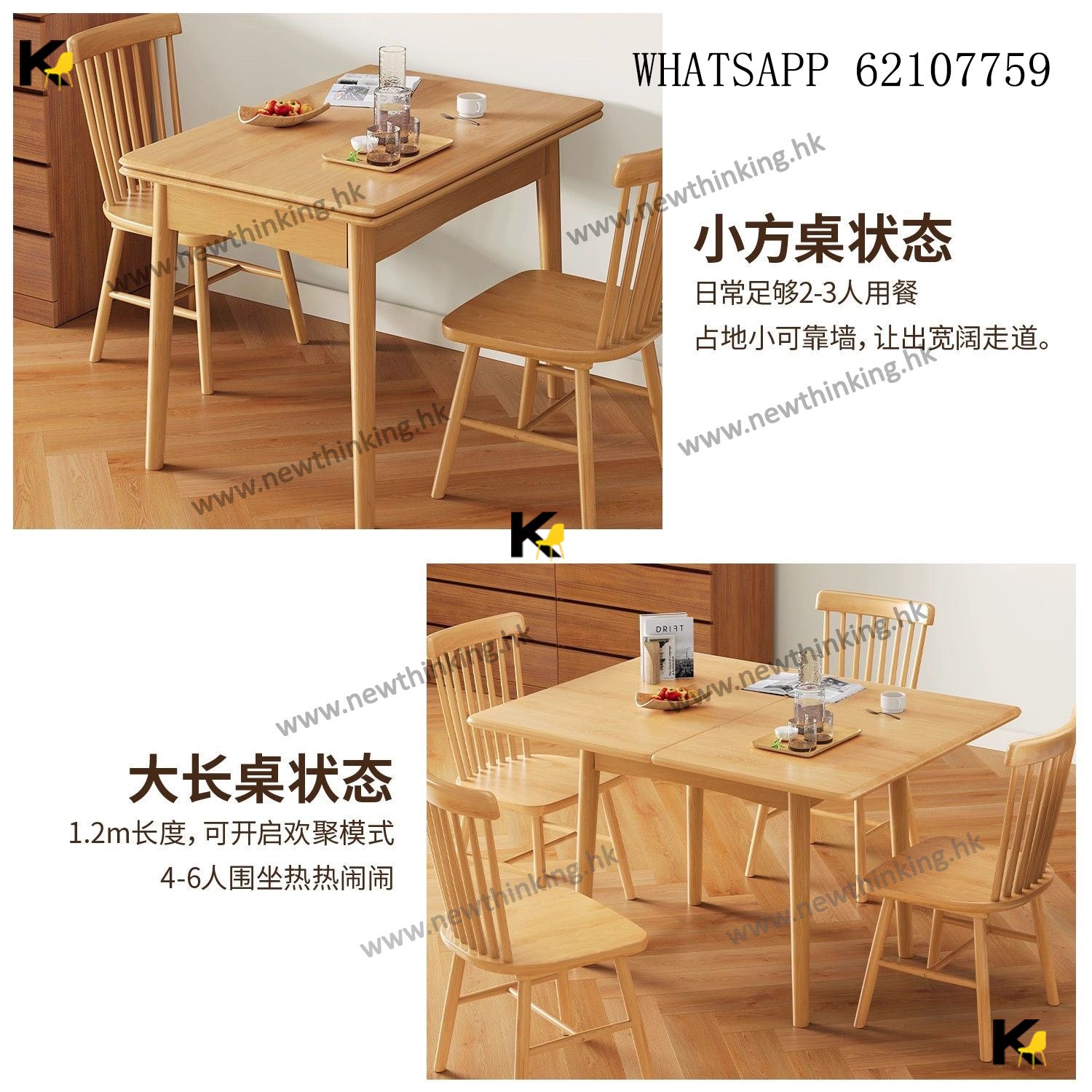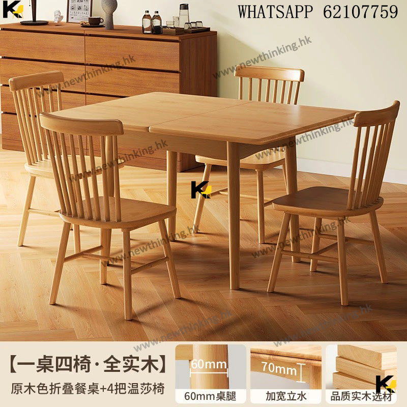 A&1835 solid wood dining table and chair set, folding table, solid wood chairs with backrests, folding table, telescopic table.
