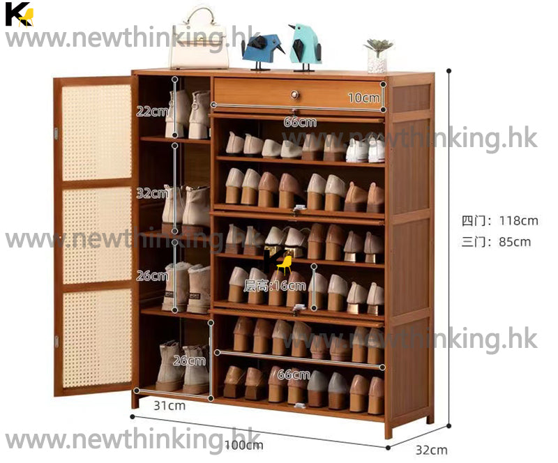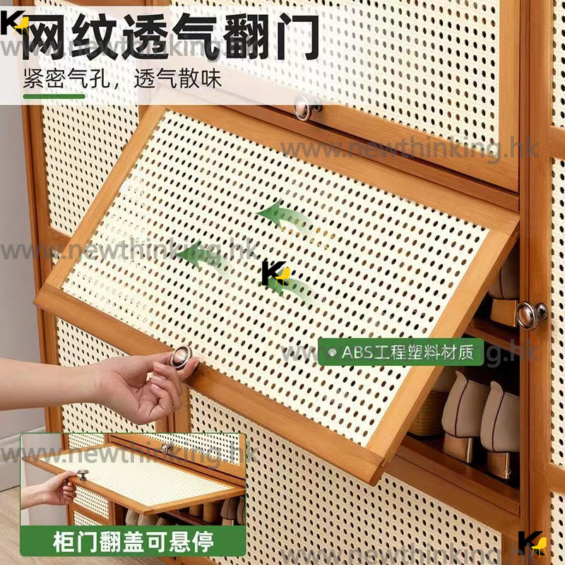 A&0593大容量鞋櫃 楠竹材質鞋架 收納櫃 儲物櫃 翻門鞋櫃 多層收納櫃