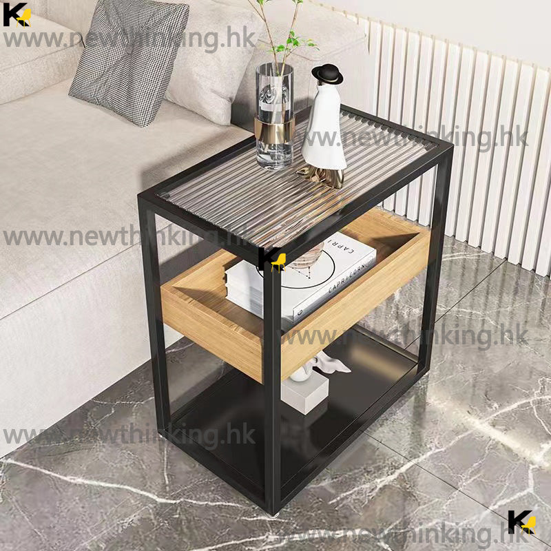 A&0610免安裝茶几 床頭櫃 邊幾 邊櫃 沙發角櫃 萬向輪可移動小桌子 置物架 超窄長虹玻璃枱面 夾縫枱
