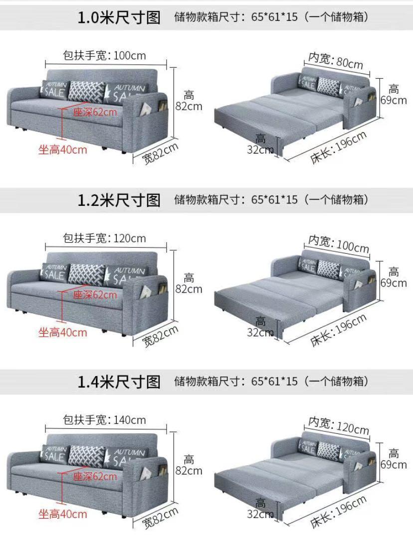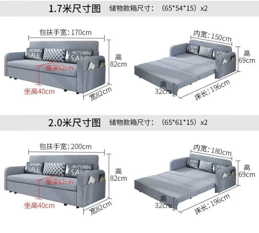 A&0199三防面料布藝梳化床 sofa bed 多顏色選擇實用儲物沙發床 防水防塵防污 折疊床 帶儲物空間