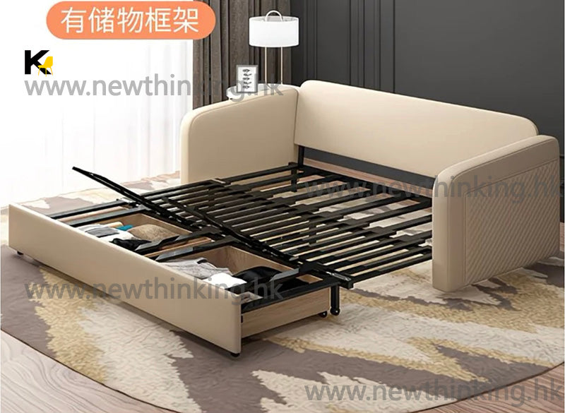 A&0418布藝梳化床 沙發床 儲物沙發床 海綿乳膠椰棕坐墊多顏色選擇推拉床 折疊沙發床 免洗科技佈梳化床防水防污