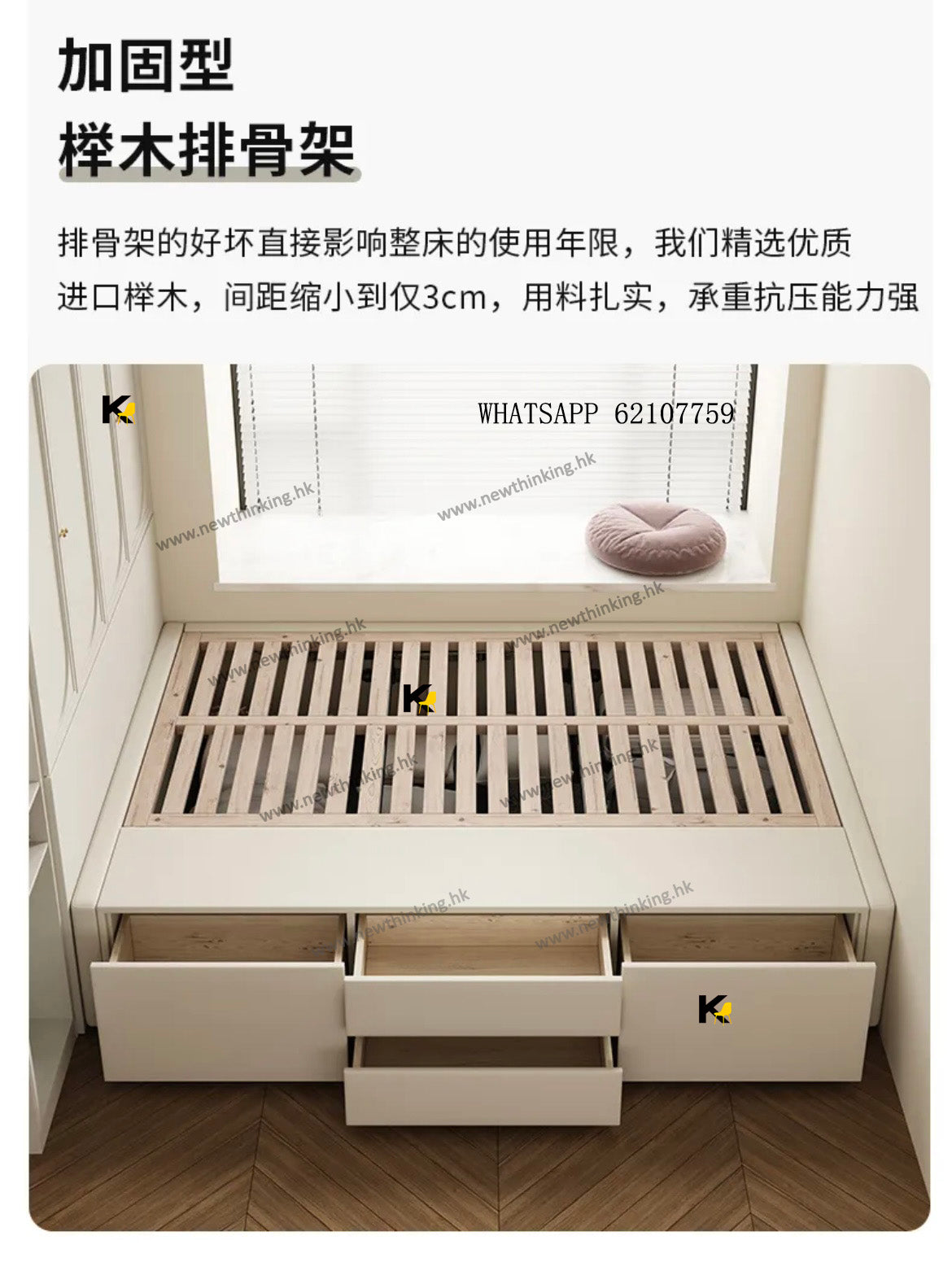 A&1455可訂製尺寸油壓床 全實木床 儲物床氣壓床 榻榻米 抽屜櫃 櫃桶床 收納床 高箱床 側開床 皮質床