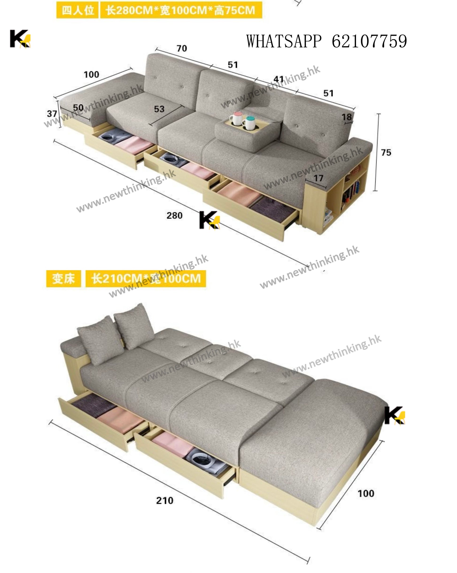 A&1479訂製顏色日式沙發床 布藝梳化床 科技皮沙發床 榻榻米單人沙發床 雙人梳化床 防水防污儲物梳化 可拆洗儲物腳踏 pu皮沙發