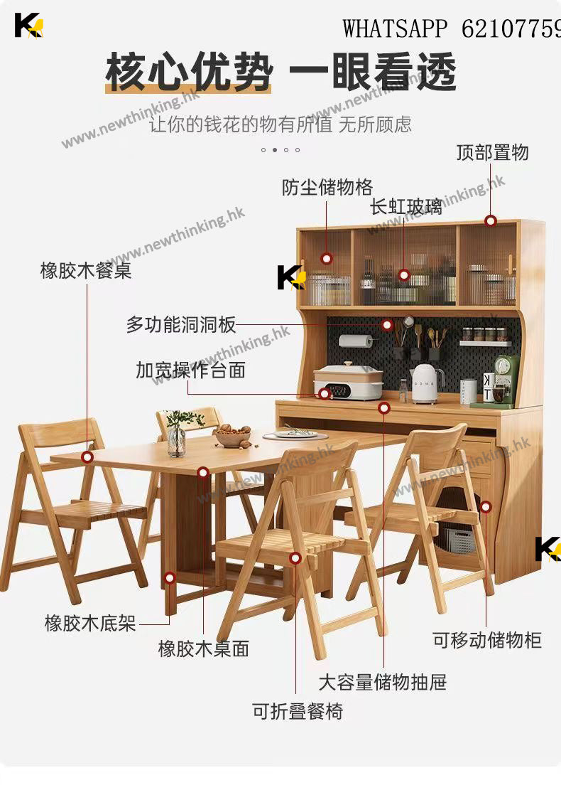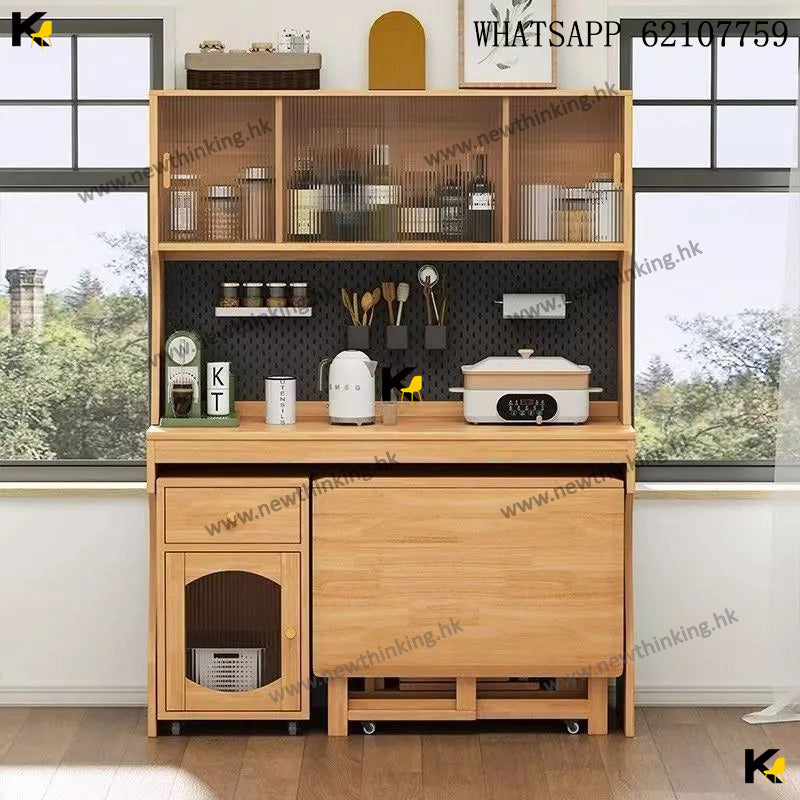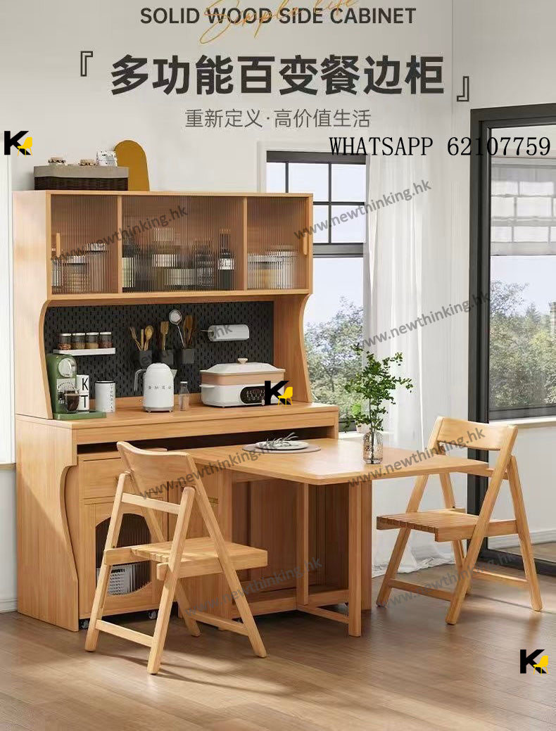 A&1510全實木橡膠木餐桌邊櫃組合櫃一體櫃
