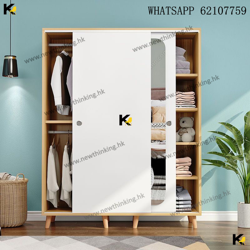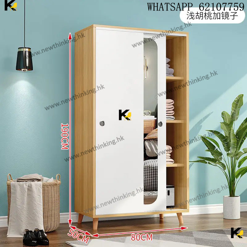 A&1531趟門衣櫃帶全身鏡 多顏色選擇衣櫥衣帽櫃頂櫃 臥室收納櫃