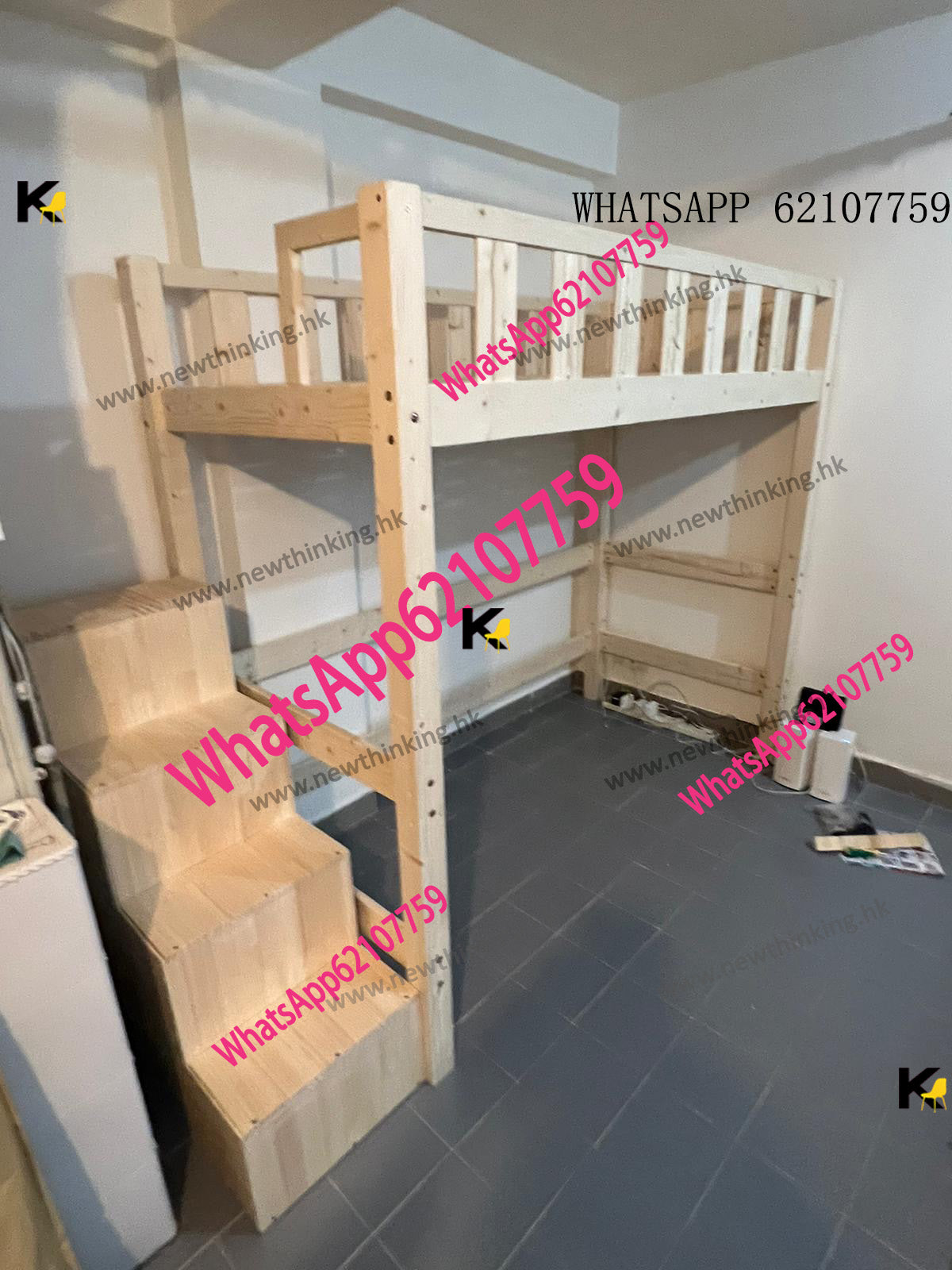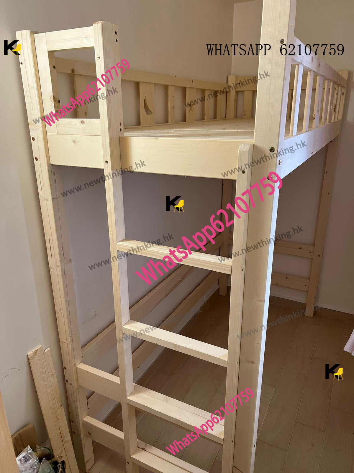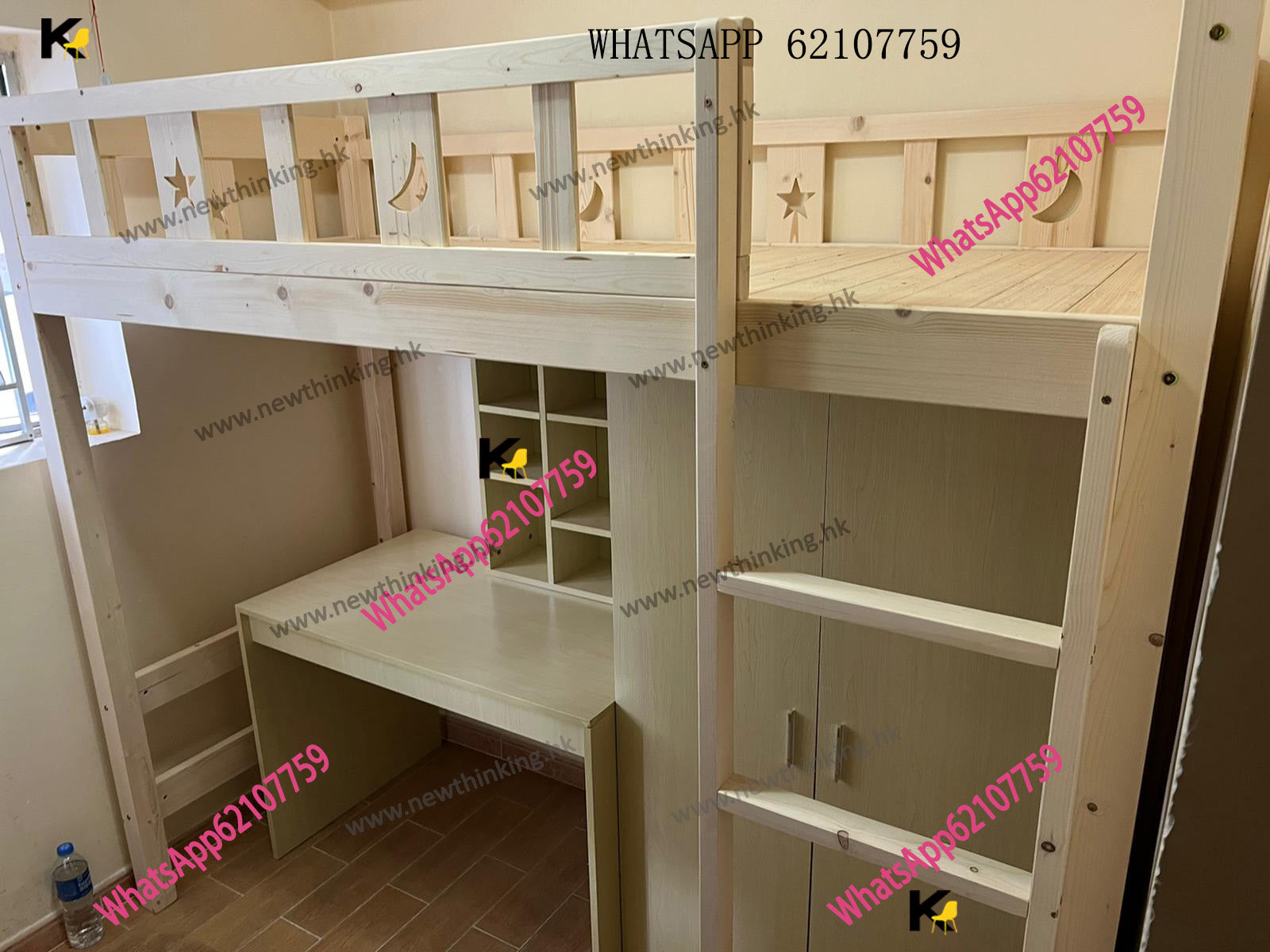 A&1548可訂造尺寸高架床 半高床 組合床 衣櫃床 梯櫃床 多功能上下床 碌架床 loft bed  工人床 實木床 松木材質 加厚爬梯 單人床 雙人床