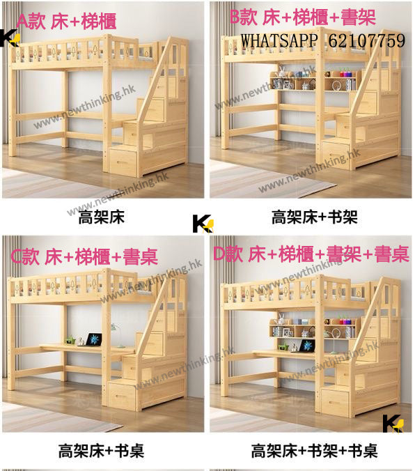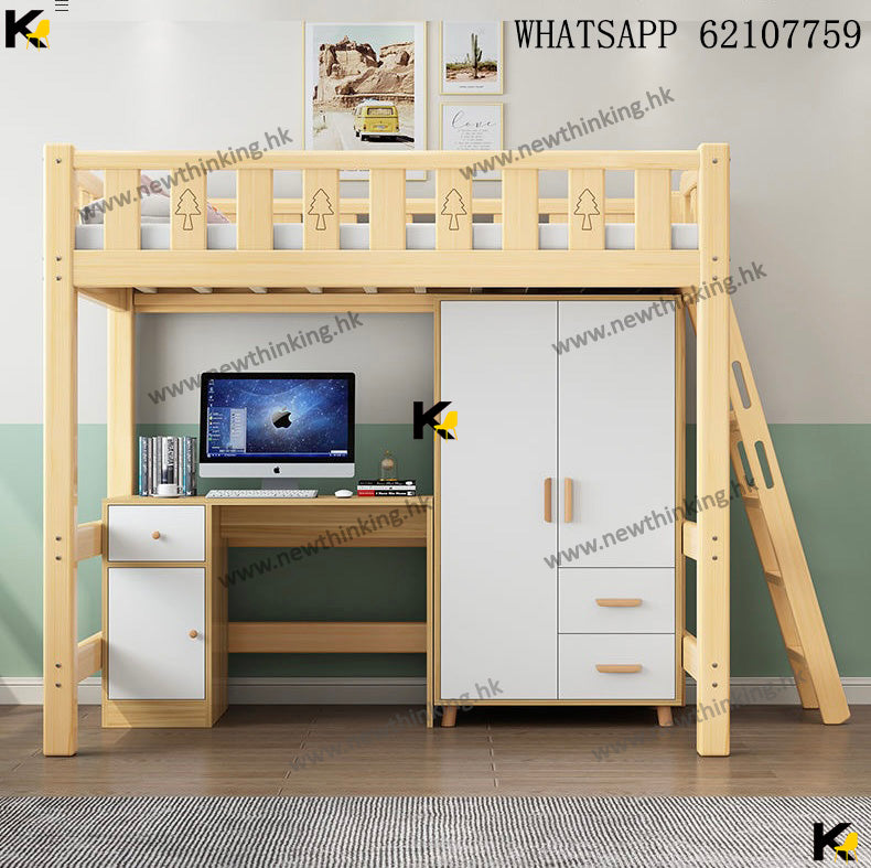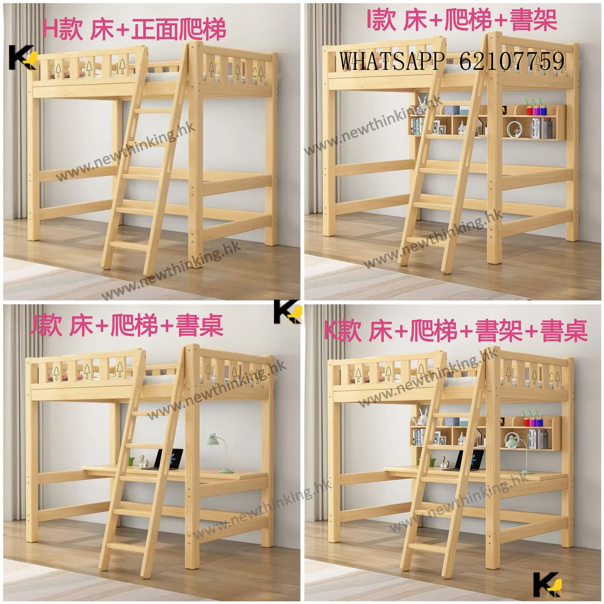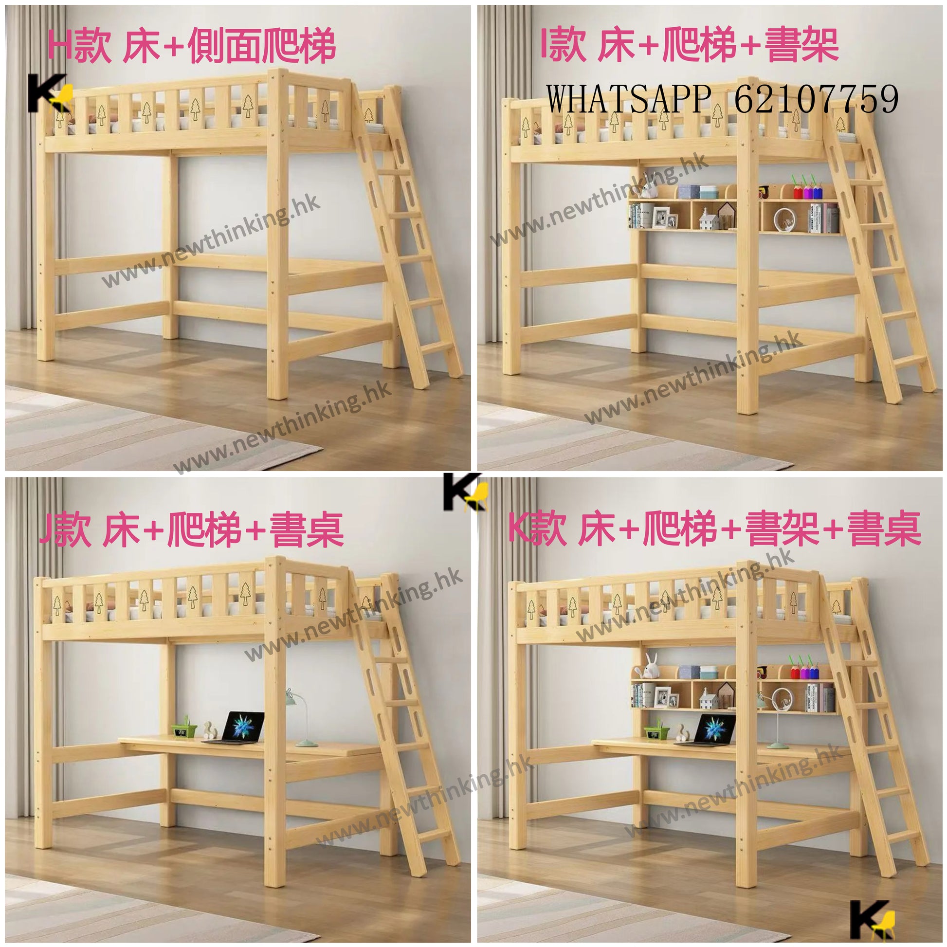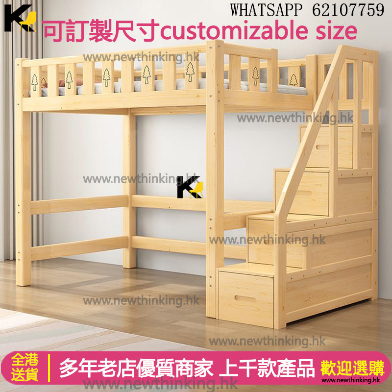 A&1554可訂造尺寸實木松木高架床 梯櫃床 半高床 兒童床 工人床 單人床 雙人床 三呎床 四呎床 書枱書桌書架多功能組合床 高低床 上下床 上床下桌 上床下枱雙層床 子母床全新包送貨