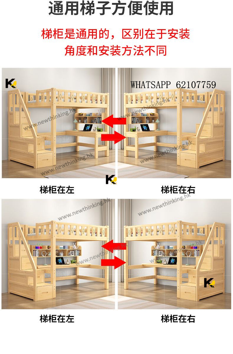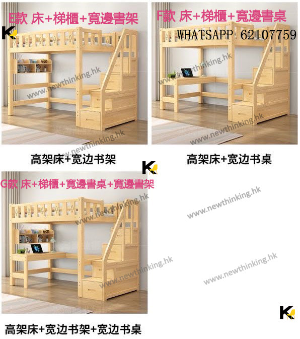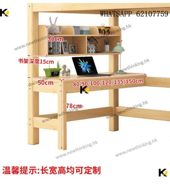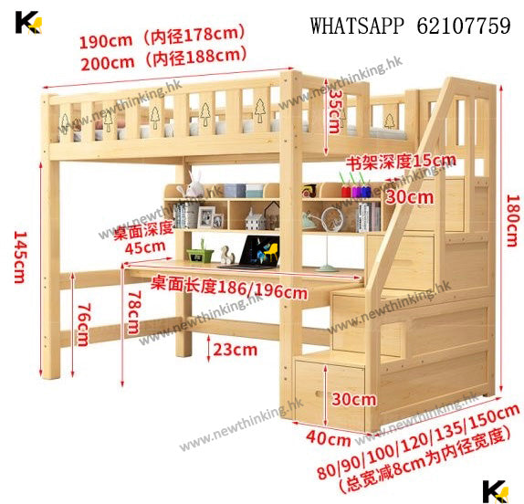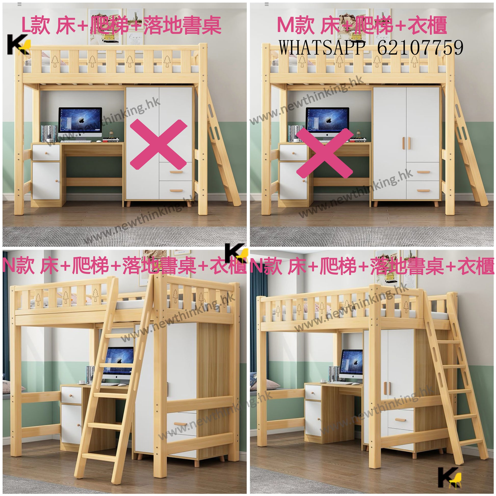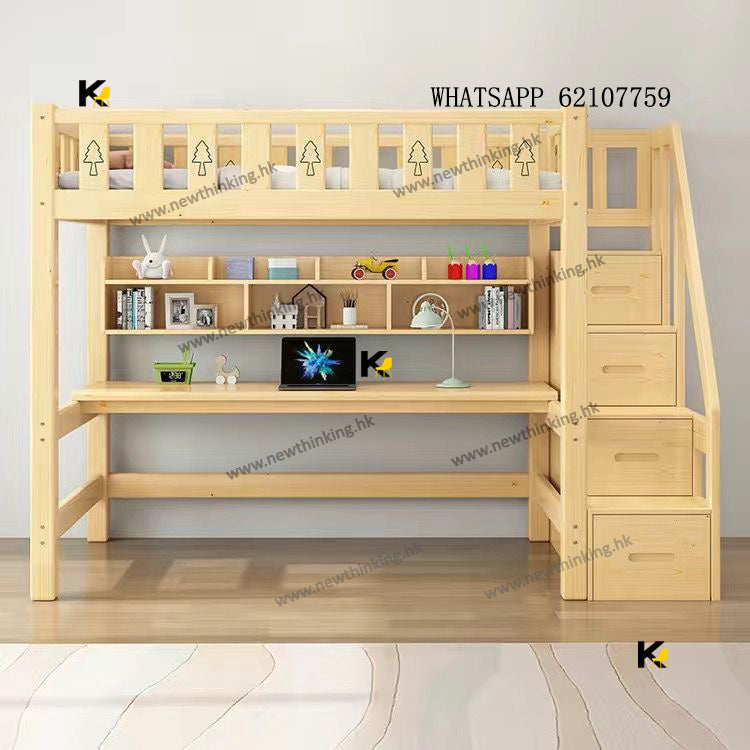 A&1554可訂造尺寸實木松木高架床 梯櫃床 半高床 兒童床 工人床 單人床 雙人床 三呎床 四呎床 書枱書桌書架多功能組合床 高低床 上下床 上床下桌 上床下枱雙層床 子母床全新包送貨