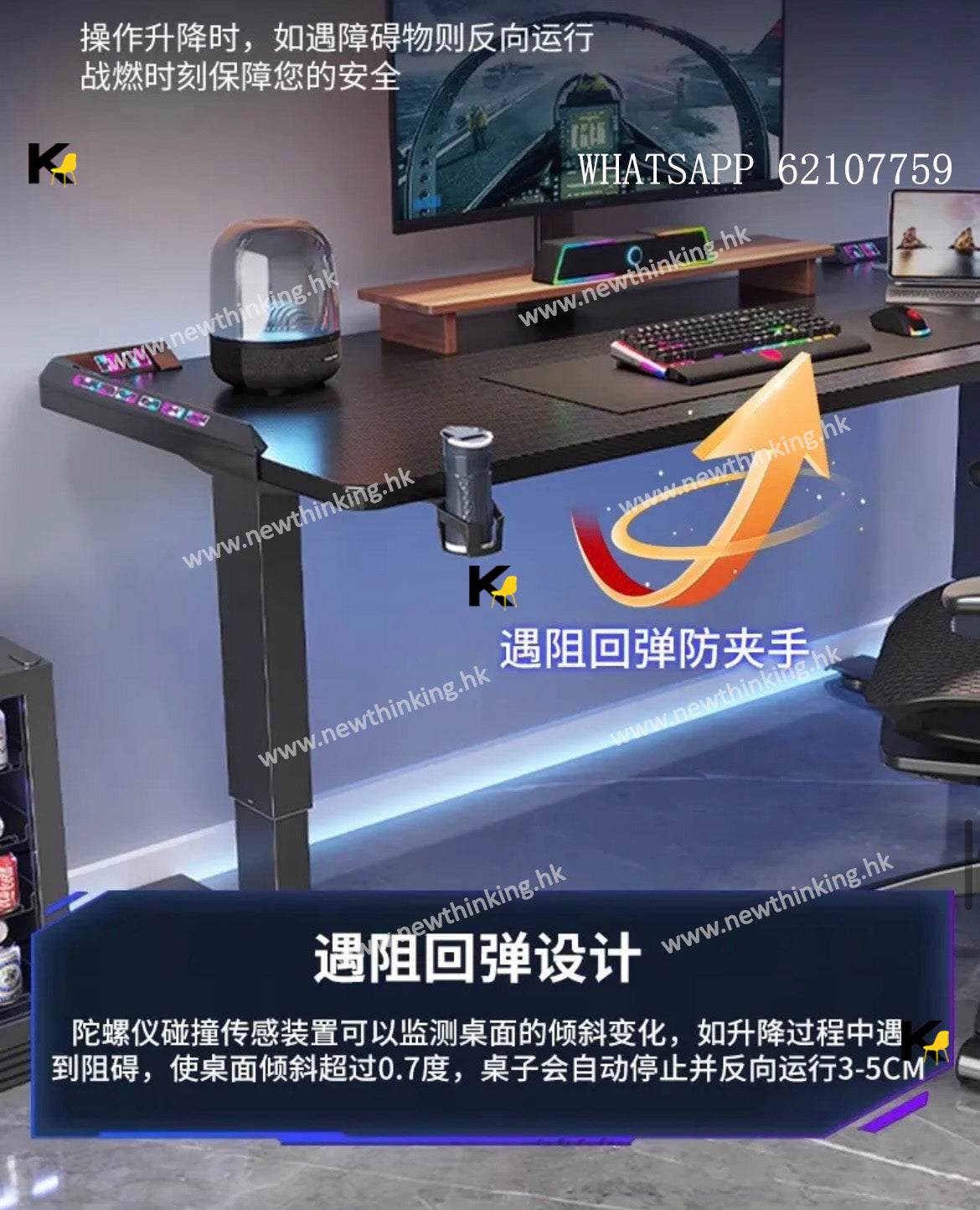 3檔位高度記憶按鍵,防夾手遇阻回彈,升降過程中遇阻自動反彈3-4cm,大功率電機,安全兒童鎖,當童鎖功能開啟時,其他任何操作鍵會暫時失去控制功能