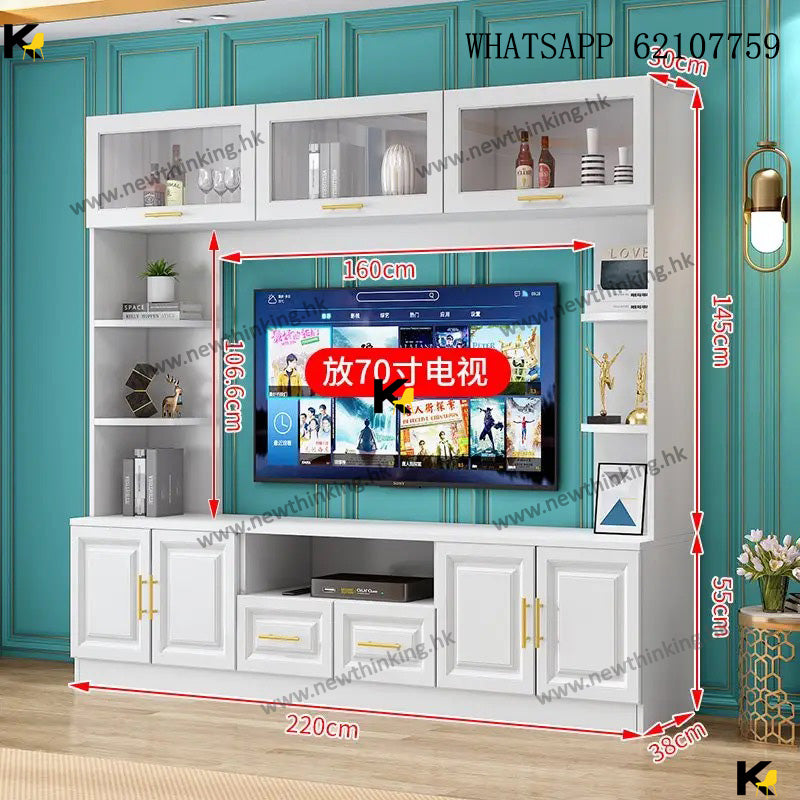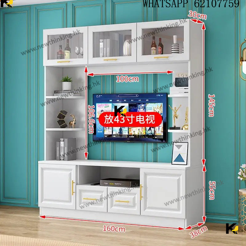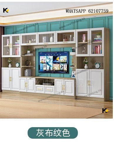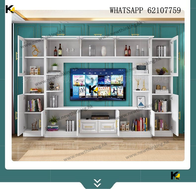 A&1633訂造實木電視櫃 玻璃門儲物櫃 書櫃 客廳收納櫃 電視背景墻