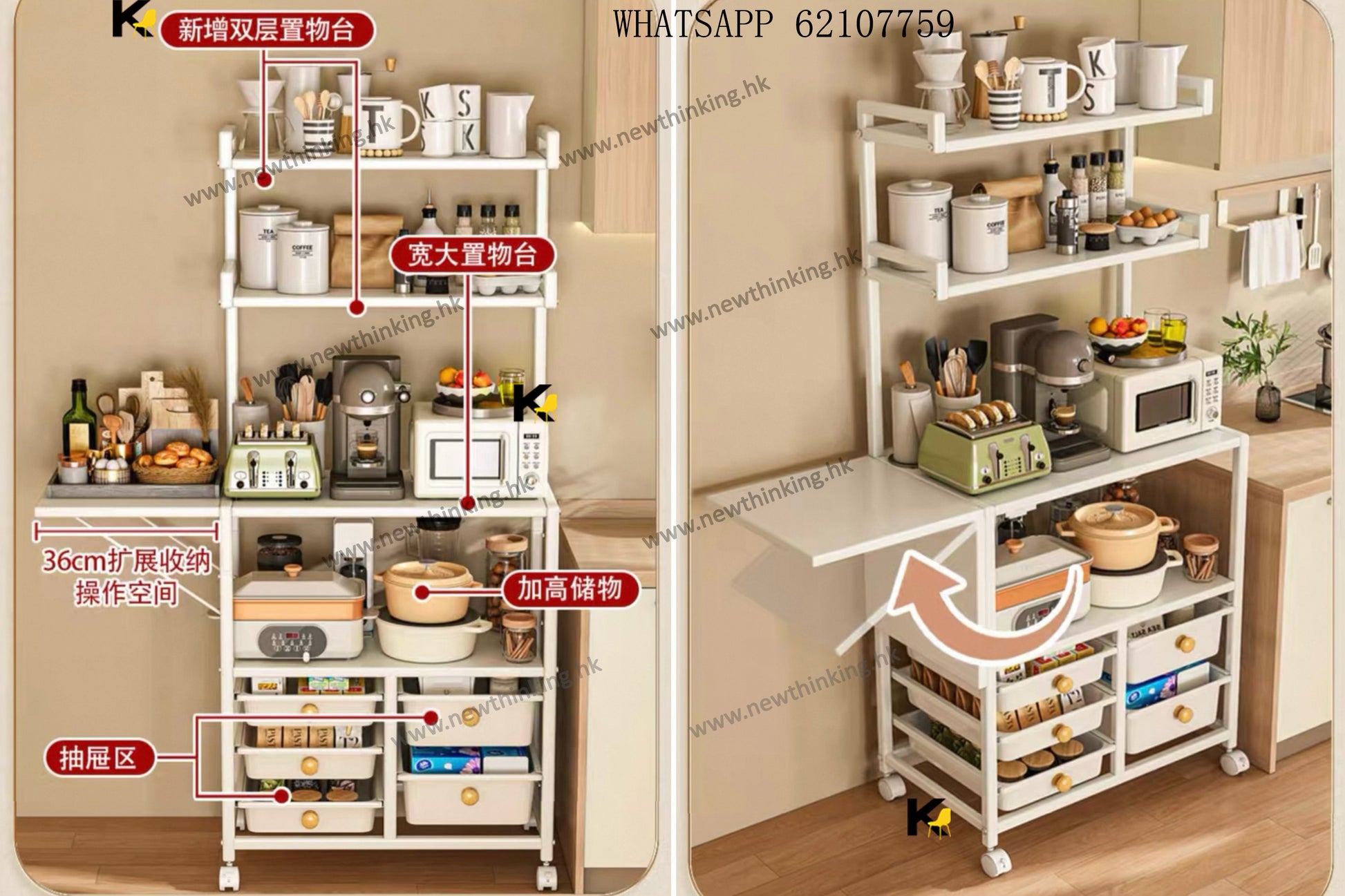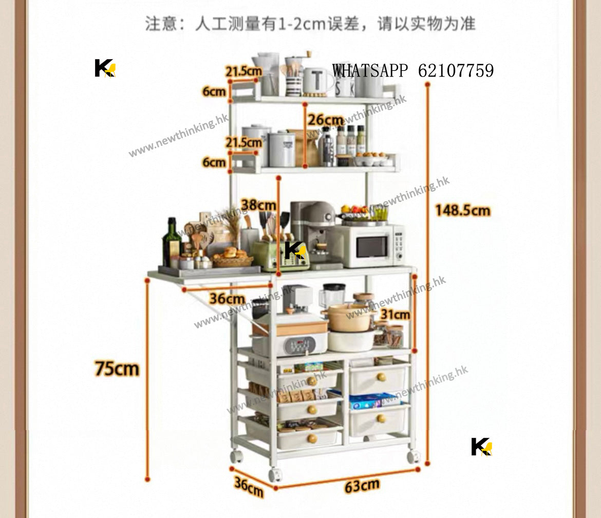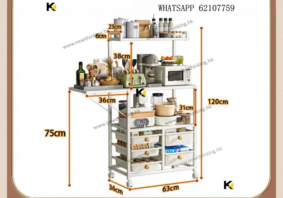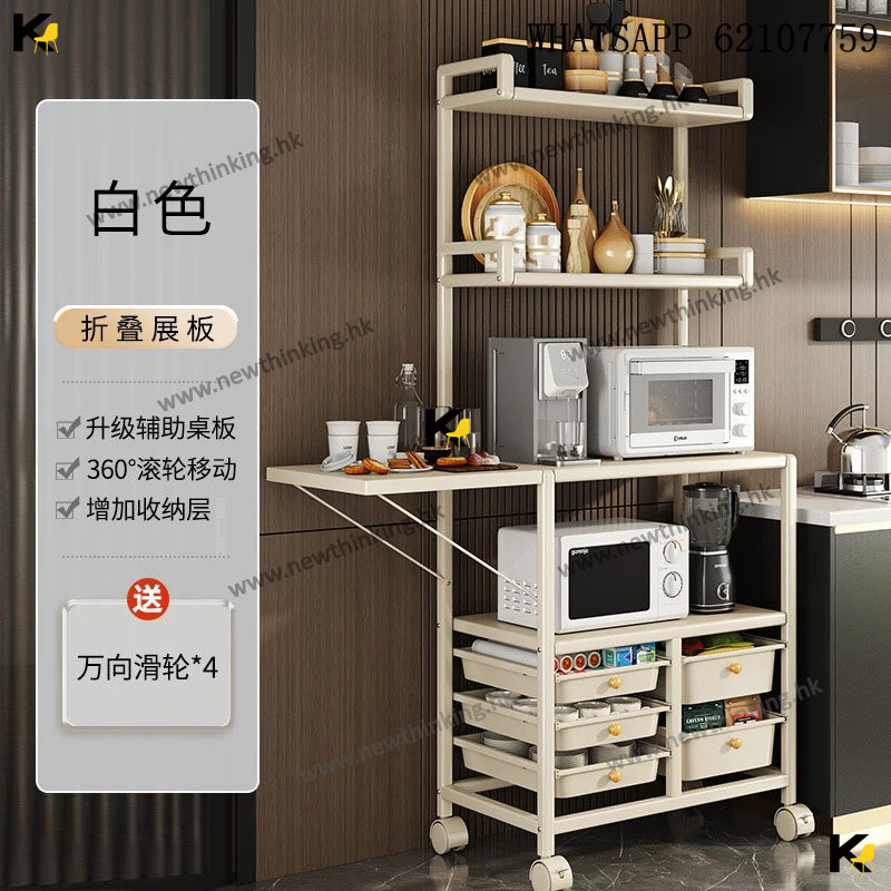 A&1908餐邊櫃多層置物架帶抽屜 廚房置物架 可移動帶轆 防塵碗櫃 電器收納架 收納櫃 微波爐 烤箱收納櫃 落地櫃 雜物櫃newthinking
