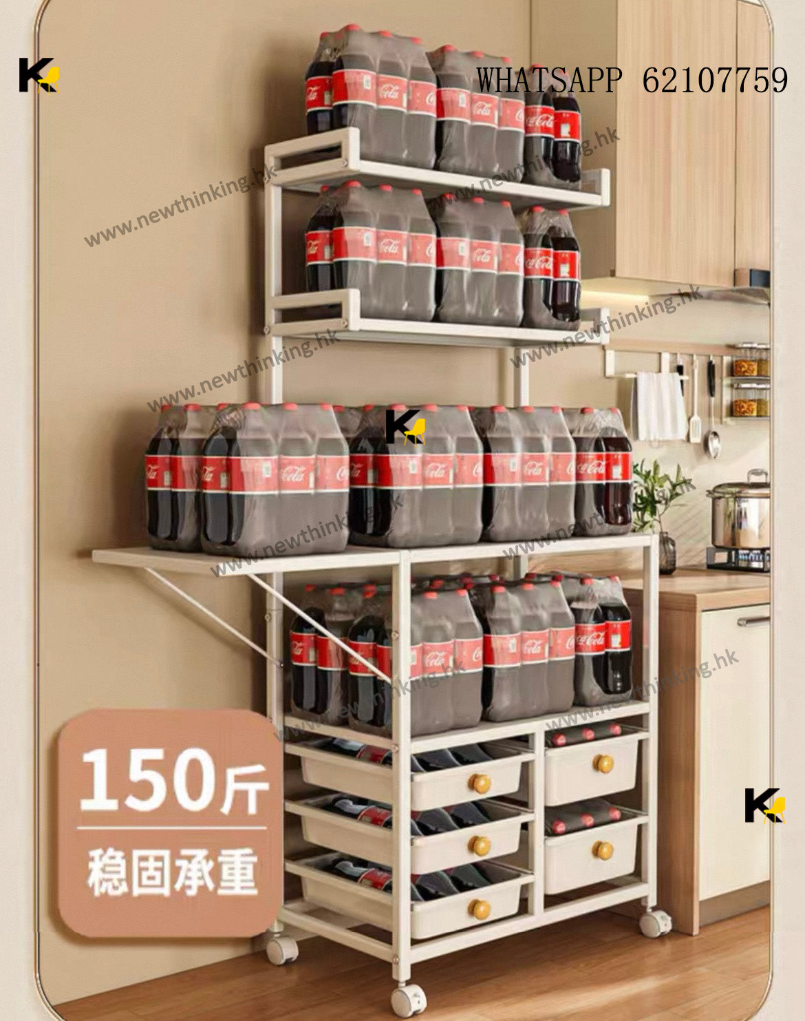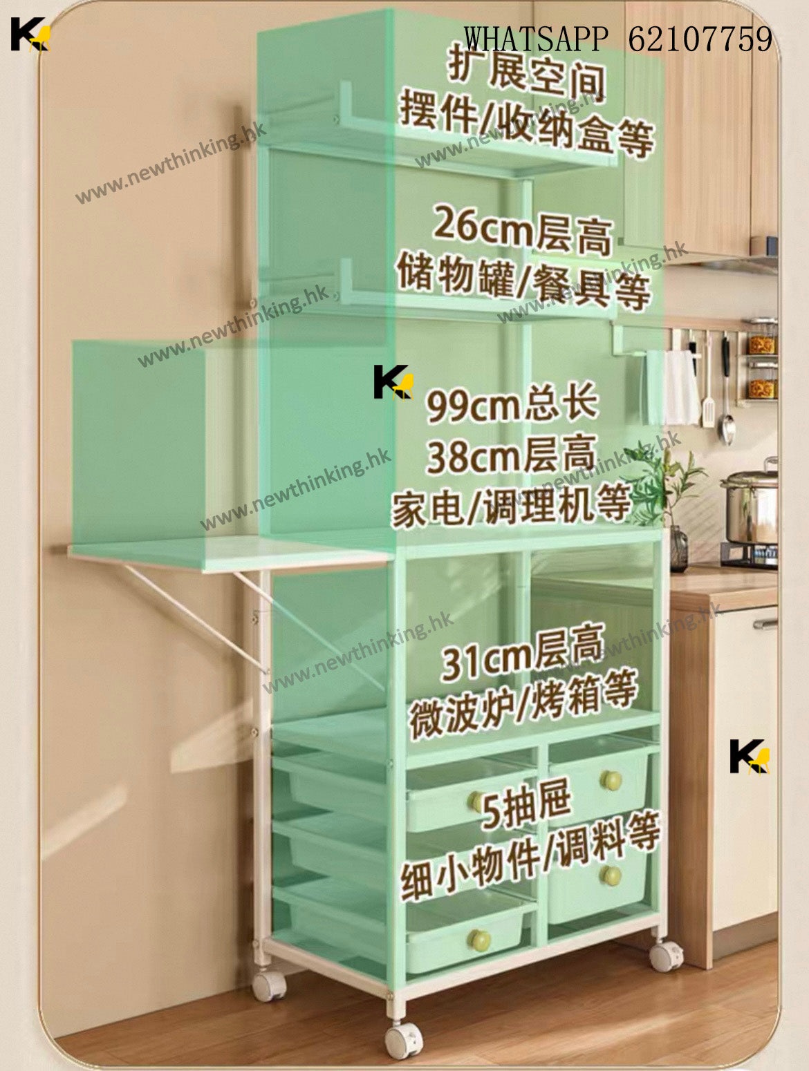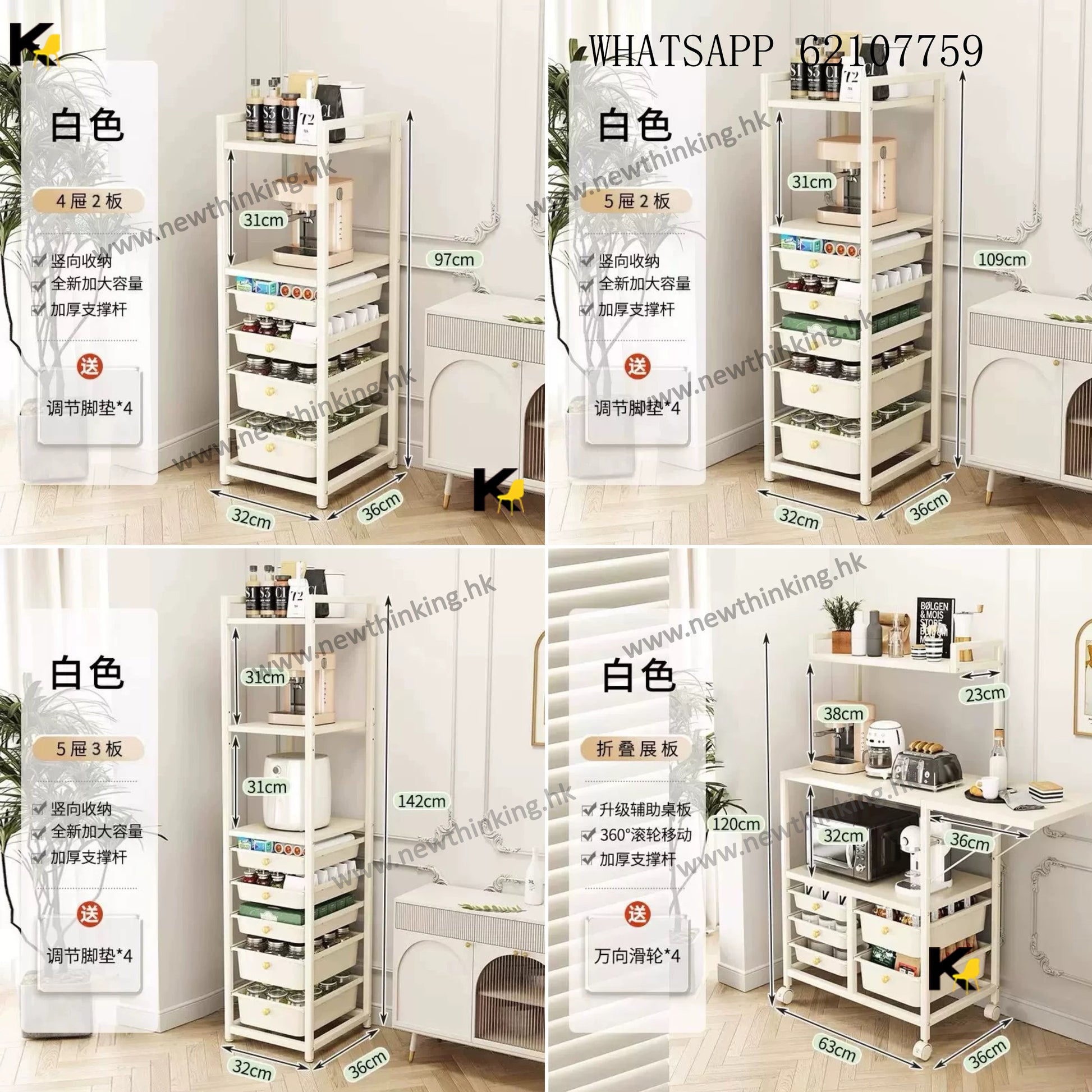 A&1908餐邊櫃多層置物架帶抽屜 廚房置物架 可移動帶轆 防塵碗櫃 電器收納架 收納櫃 微波爐 烤箱收納櫃 落地櫃 雜物櫃newthinking