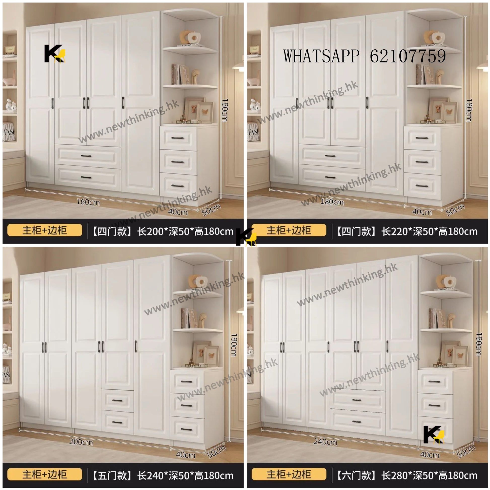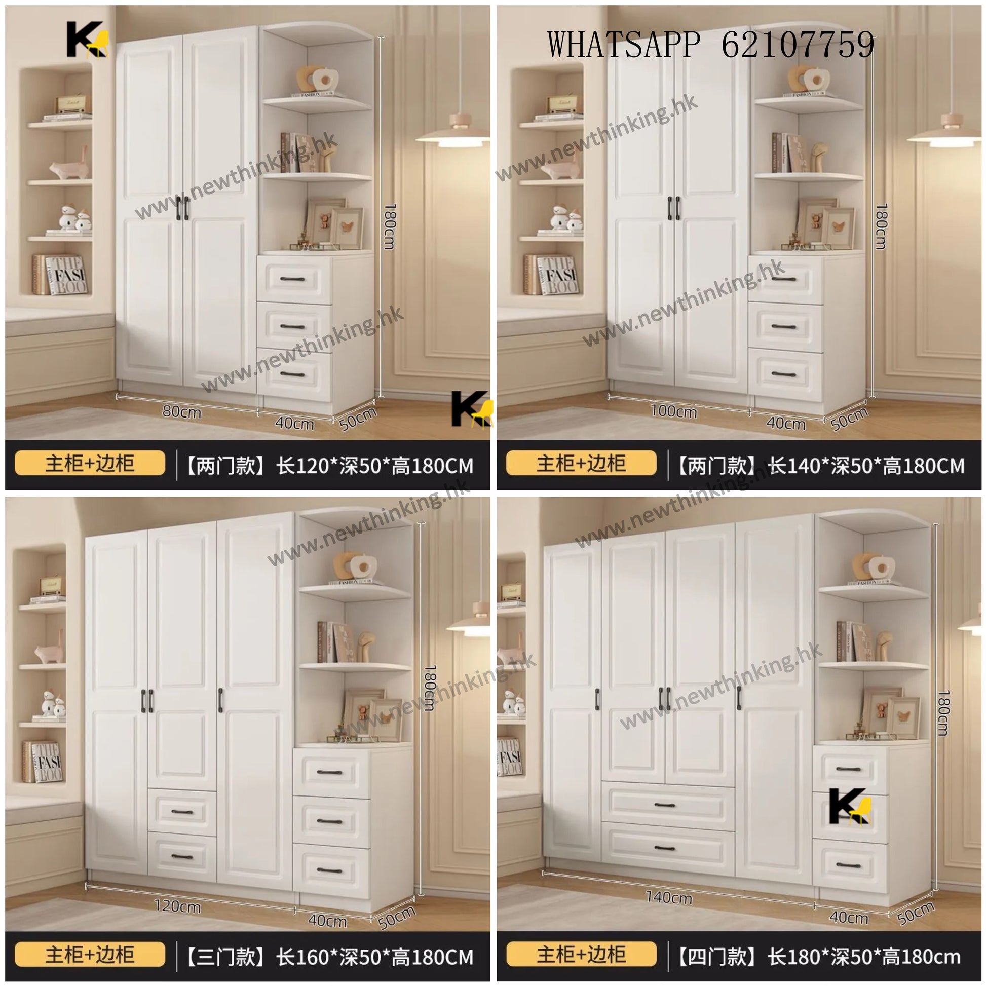 A&3993大容量衣櫃 掩門衣櫃帶櫃桶 對開門衣櫃 衣櫥 臥室收納櫃 衣物置物櫃 掛衣櫃 衣帽櫃newthinking