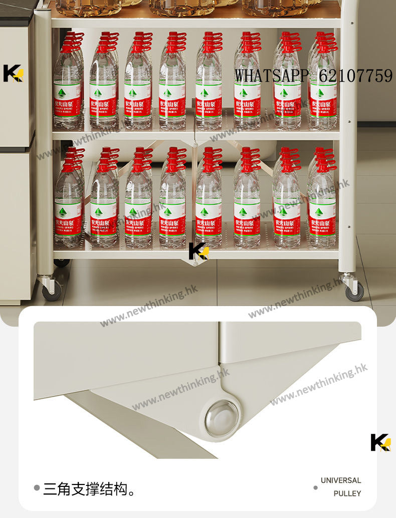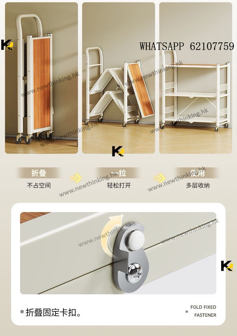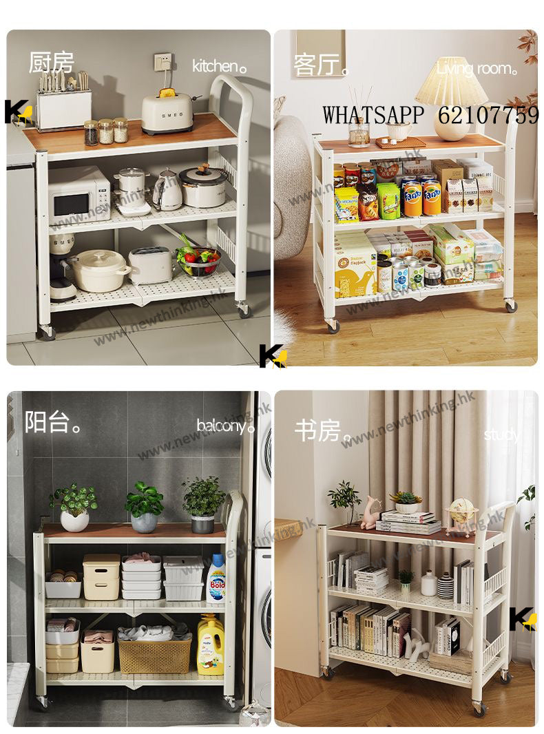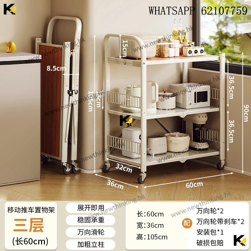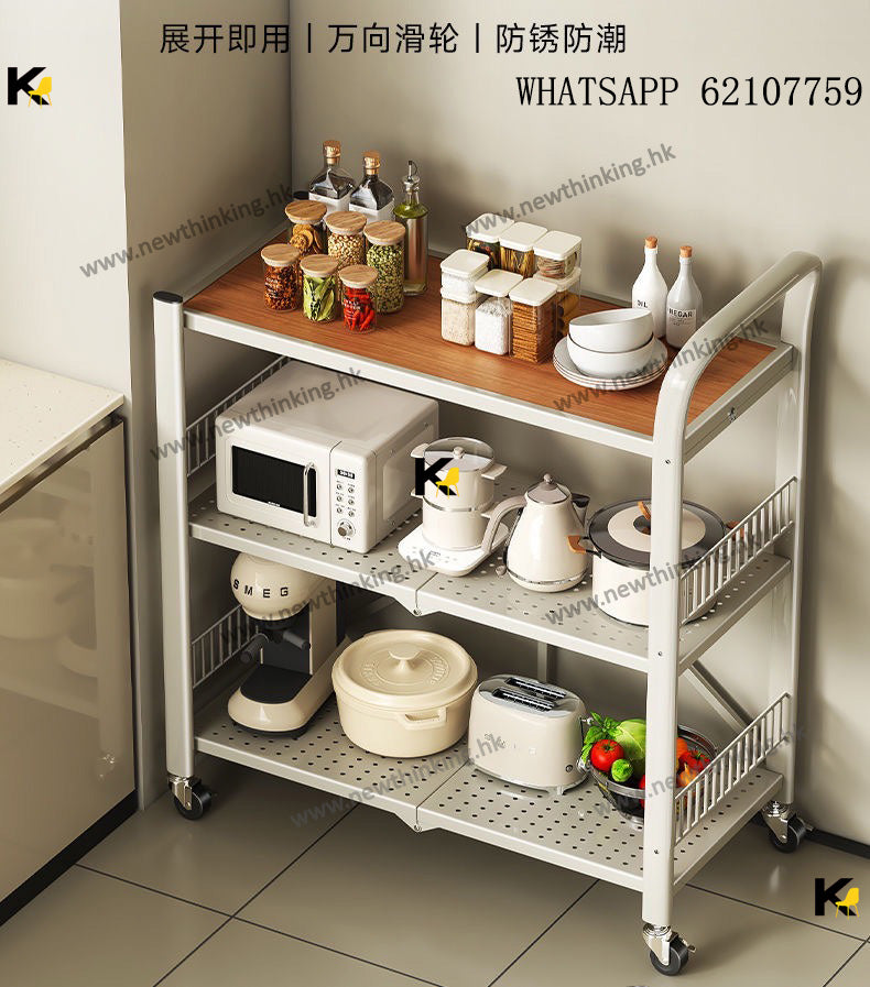 A&3998免安裝展開即用置物架 廚房置物架 多層收納架 雜物架 折疊架 微波爐烤箱架子 收納推車 帶轆方便清潔newthinking