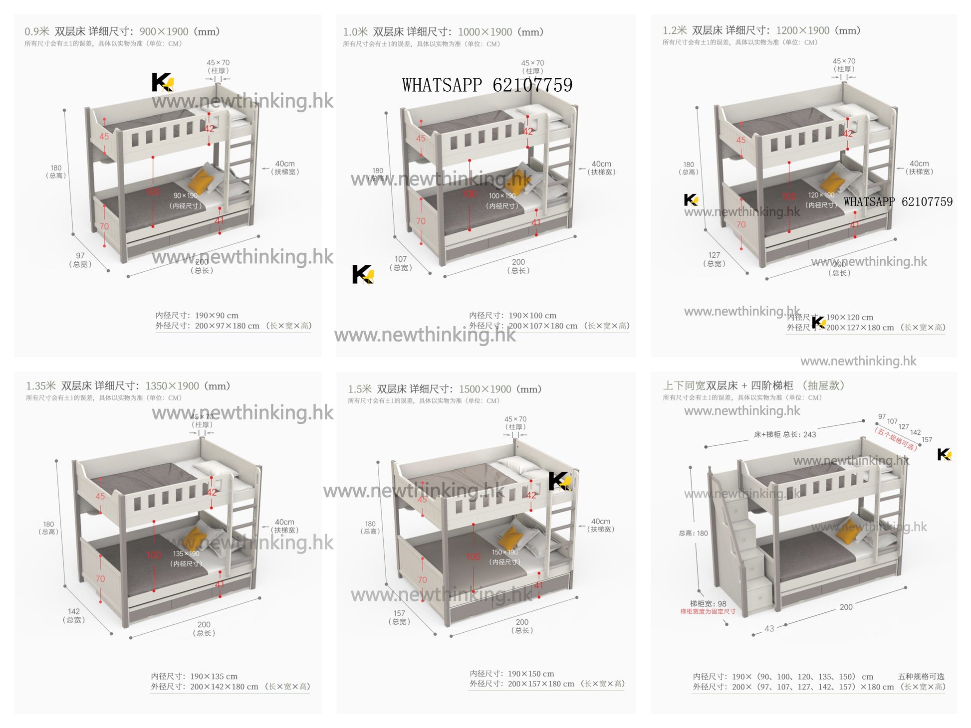 梯櫃寬度固定98cm,床+梯櫃總長度243cm