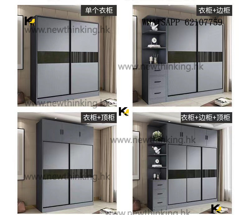 A&5082衣櫃 趟門衣櫃 衣櫥 推拉門衣帽櫃 實木經濟型臥室家用收納櫃子簡易出租房大衣櫃
