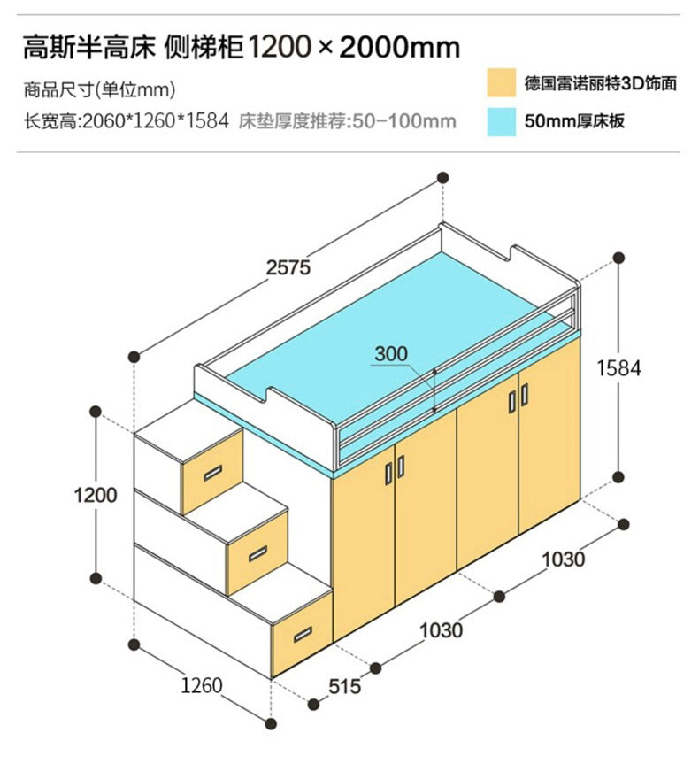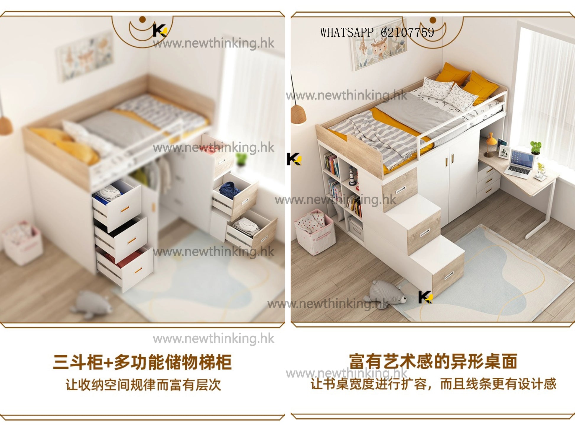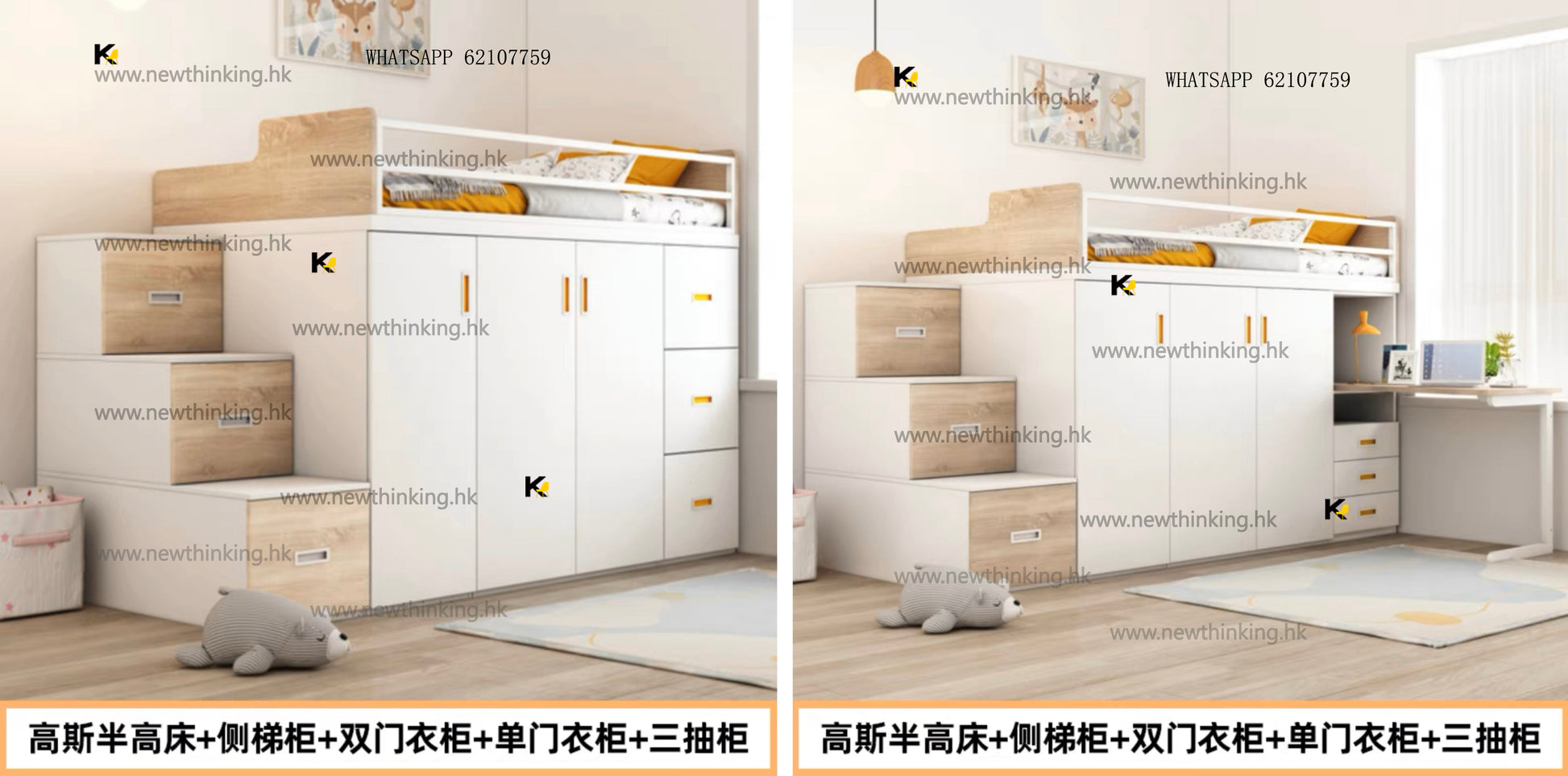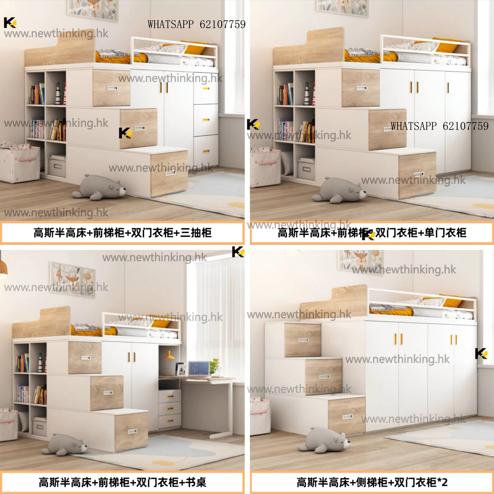 A&5118小戶型半高儲物床 衣櫃床 組合床 多功能收納床 衣櫃床 抽屜床 櫃桶床 高箱床 兒童床 成人床架 單人床 雙人床 梯櫃床 高低床 懸空床 可訂製尺寸