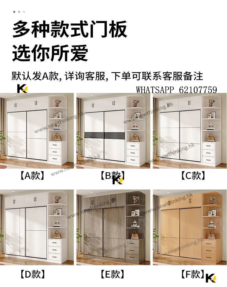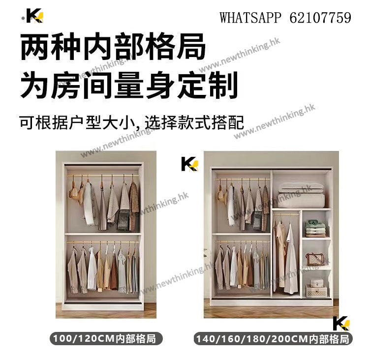A&5157趟門衣櫃 臥室收納櫃 推拉門衣櫃 大容量衣櫃 移門衣櫃 儲物櫃 小戶型儲物櫃子收納大衣櫥全新包送貨