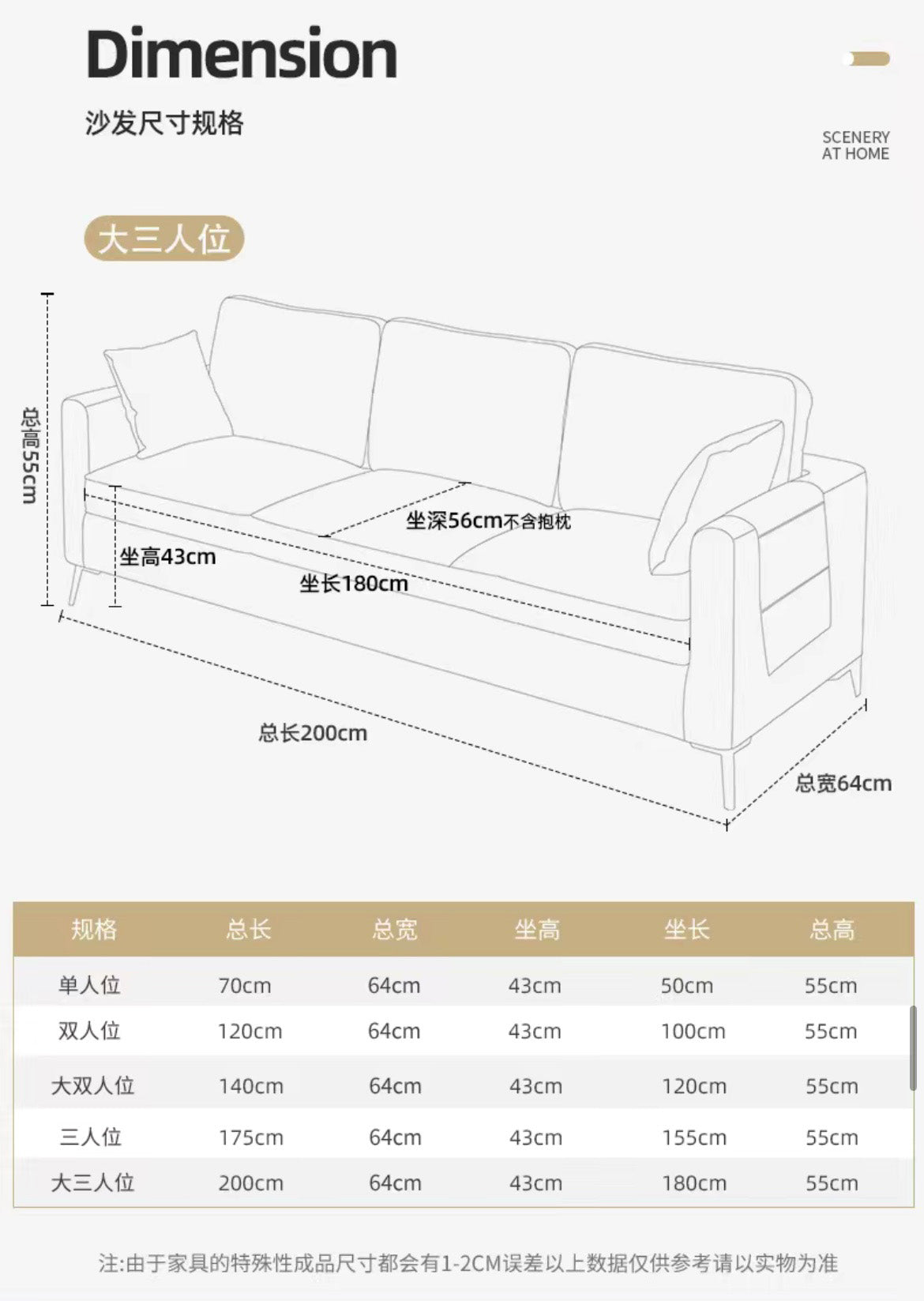 🔸傢私產品誤差約±1-2cm。軟體產品誤差±3-5cm為正常範圍,請預留好相應的尺寸偏差以及踢腳線的尺寸避免無法安裝