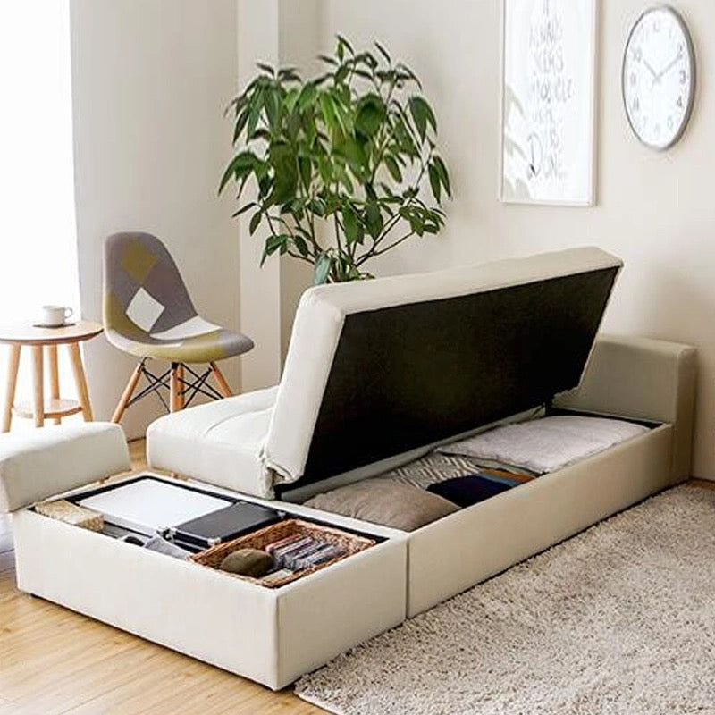 A&5204儲物梳化床 日式布藝沙發床 帶收納空間 可折疊省空間多功能折疊床