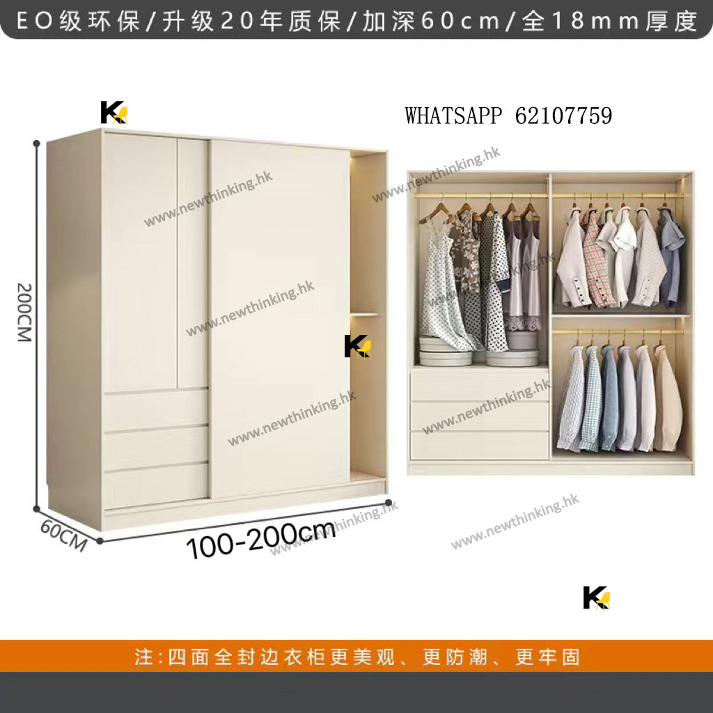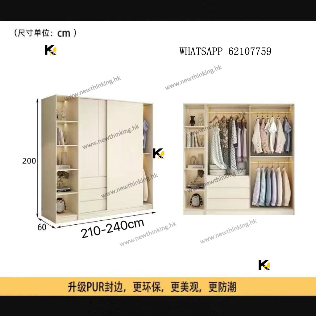 A&5207加厚背板ENF級歐鬆板材質趟門衣櫃 大容量衣櫥 睡房收納櫃