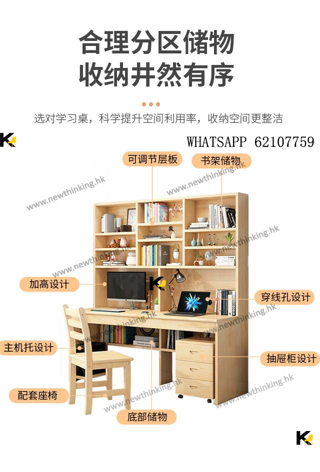 A&5213實木書桌 書枱書架一體 組合枱 電腦桌 辦公桌 學習桌 電腦枱 辦公枱 學習枱 工作枱 文件櫃櫃桶 桌子椅子組合 多尺寸選擇全新包送貨