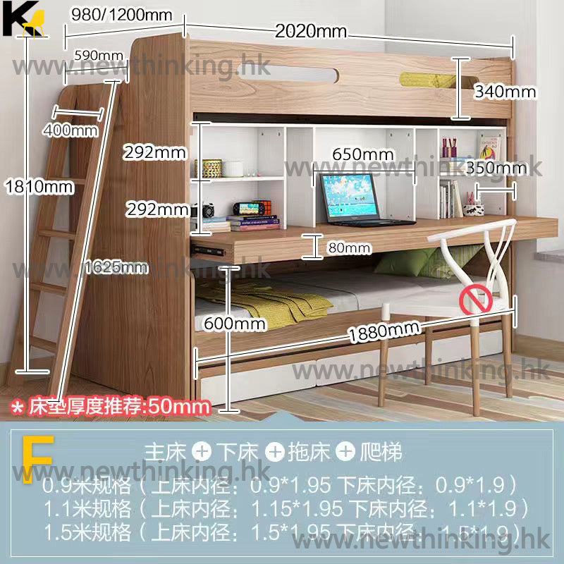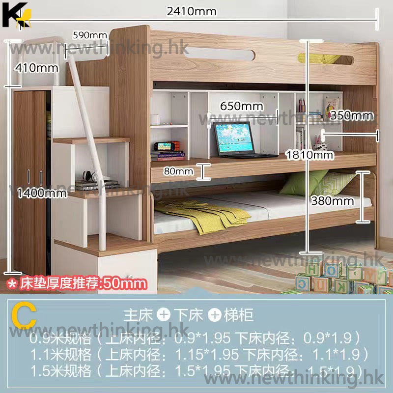 A&0066多功能組合床 書枱床一體 小戶型上下床 高架床 子母床 雙層床 兒童床