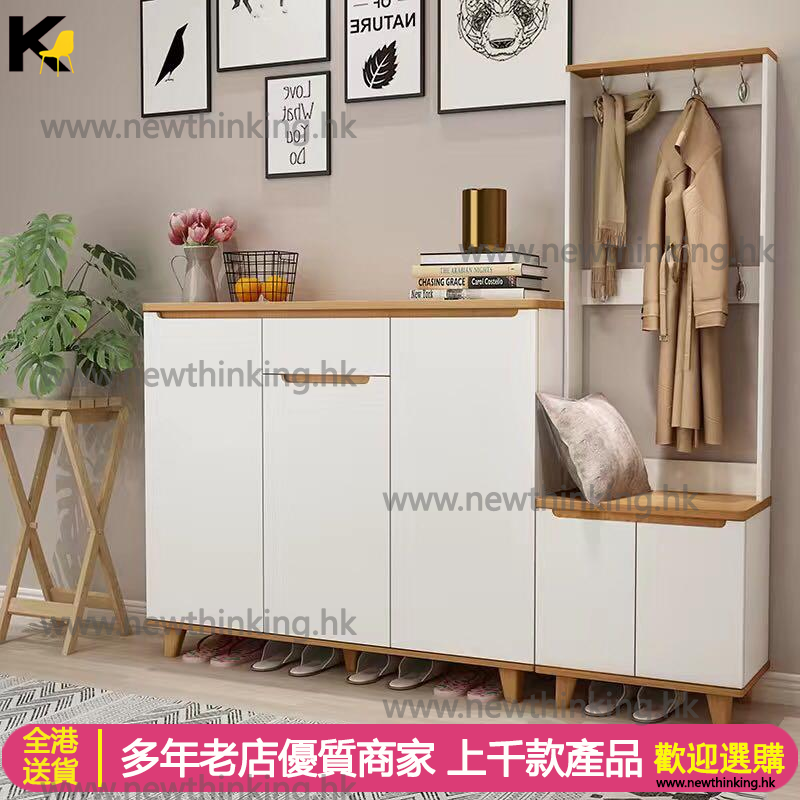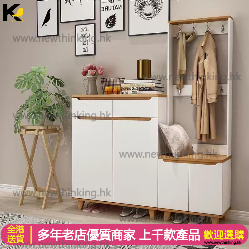A&0245入門鞋櫃衣帽架落地置物架鞋櫃掛衣架組合玄關櫃隔斷櫃衣帽櫃換鞋櫃換鞋凳組合櫃
