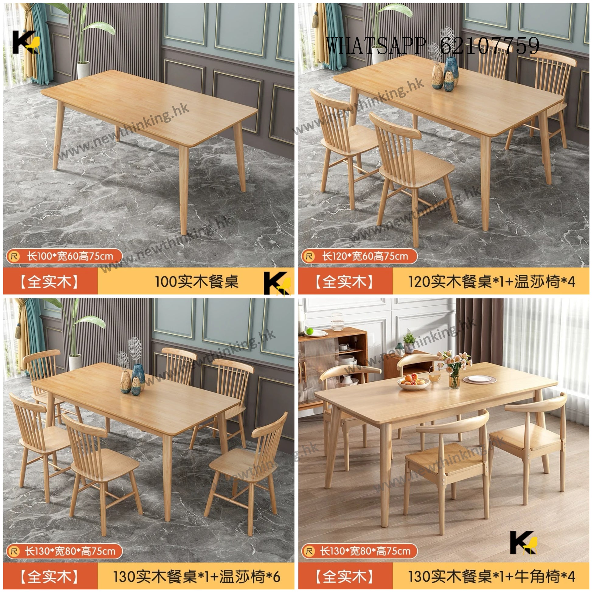 A&0439實木橡膠木餐枱餐椅食飯枱餐桌